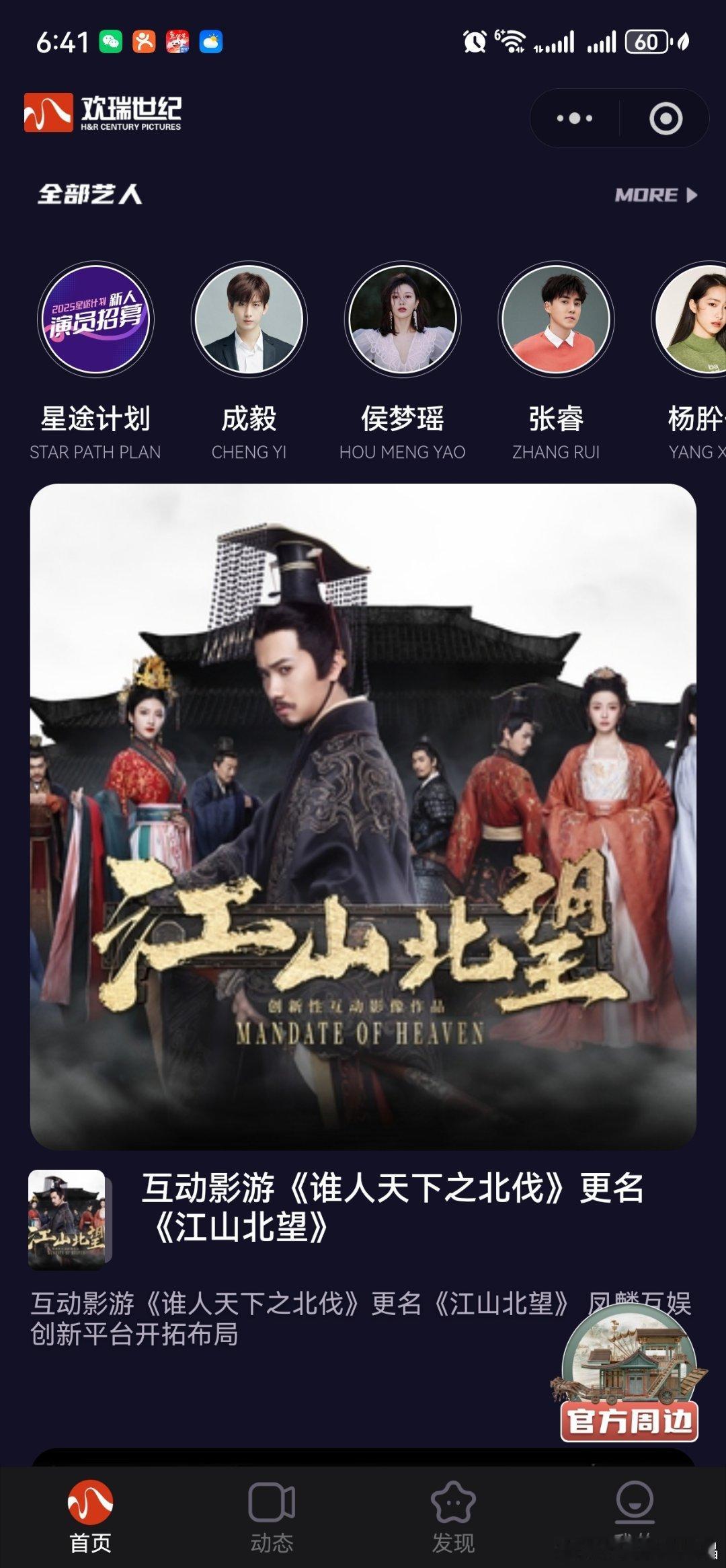 欢瑞官网还有成毅刚去看了欢瑞小程序,成毅还在第一个。