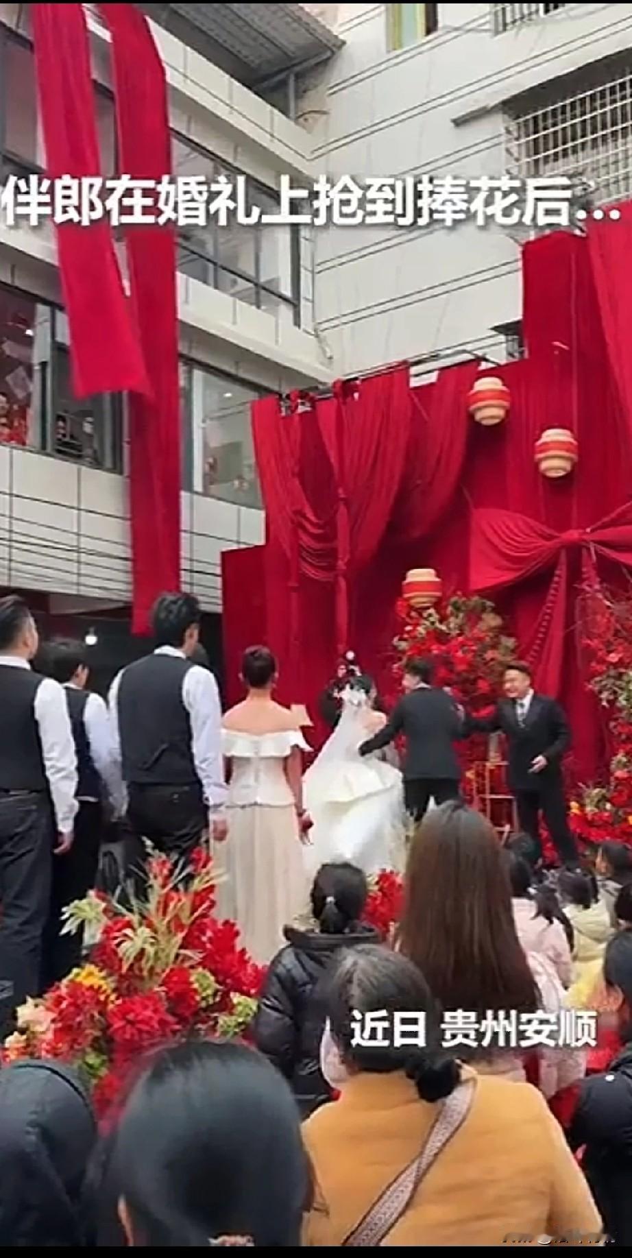 近日贵州的一场婚礼感动了周围的人,婚礼现场抛手花,伴郎抢到手花后,直接拿走了主