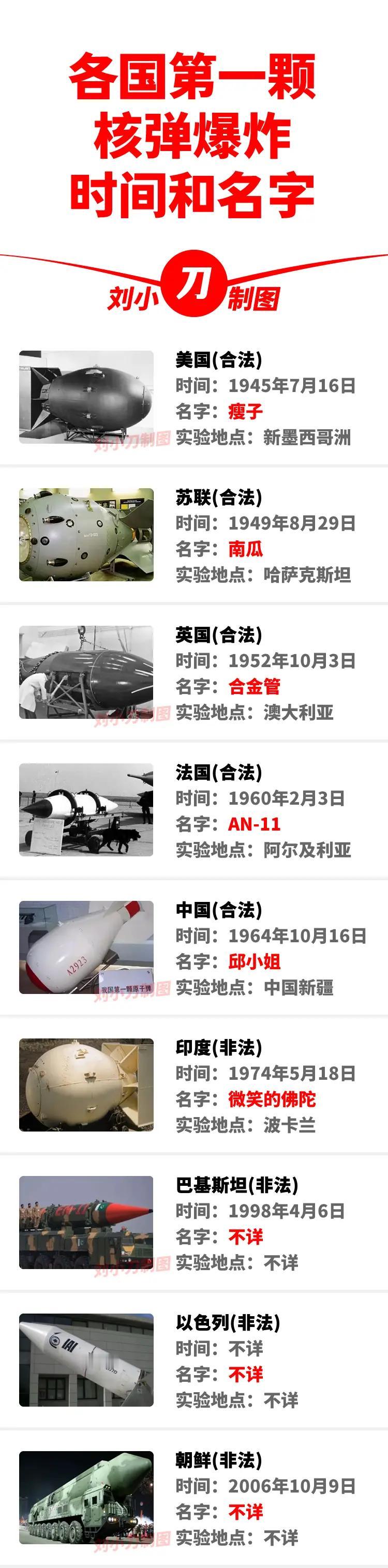 世界各国的第一颗原子弹,谁的爆炸当量最高? 原子弹这种武器,你可以不用,但是不能没有,有了这,才能在国际上挺直脊梁。 就像朝鲜,国家虽小,全世界却没有国家敢欺负他们。 就像印度,有了这个武器的加持,就像南亚大陆上一只上窜下跳的猴儿。 言归正传,在各国的首颗核弹中,爆炸当量最大的是法国,而爆炸当量最小的是巴基斯坦和朝鲜。 对于那些小国家来说,爆炸当然越大成本也就越高,所以要注重成本。 即使是一个窜天猴一样大的原子弹,那也具有原子弹的威慑力。