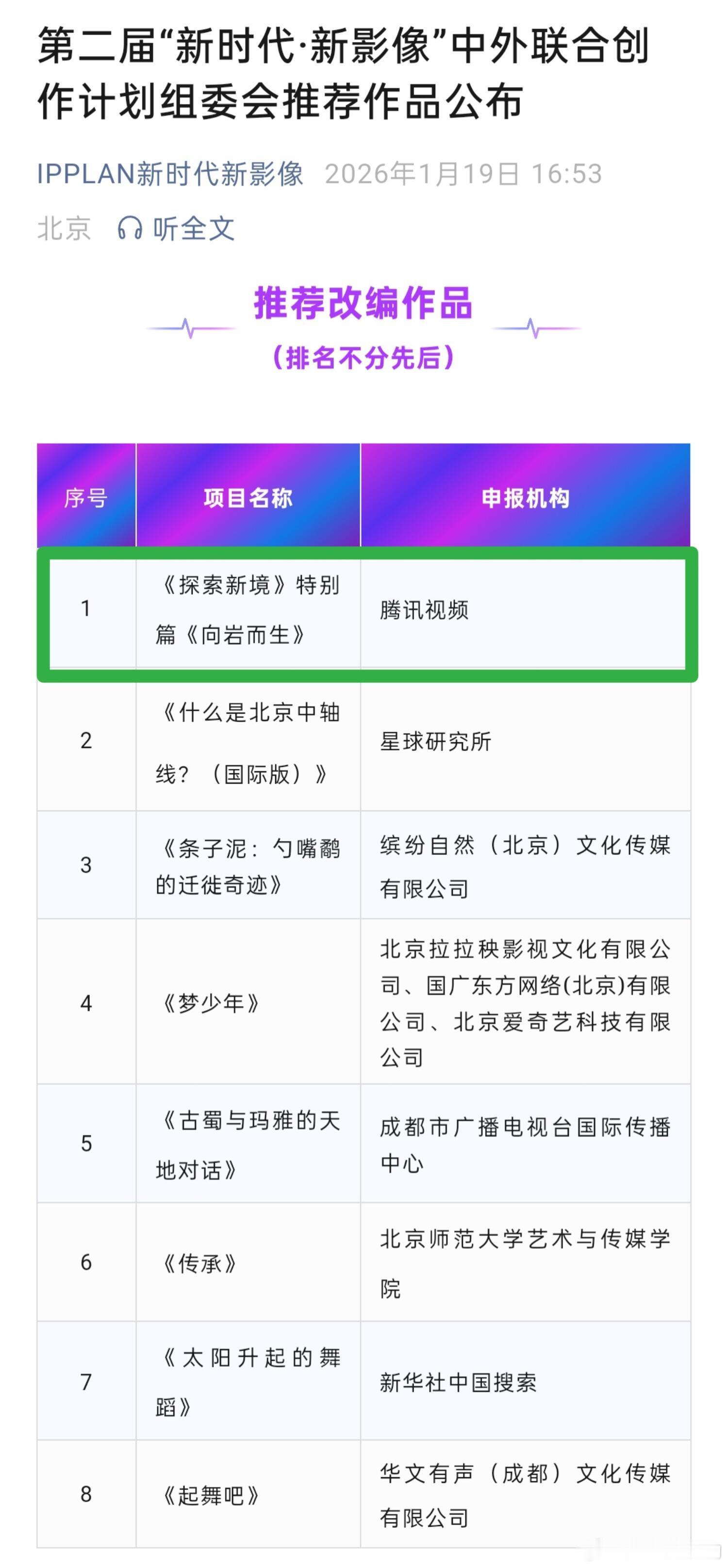 王一博发起的纪录片《探索新境》特别篇入选第二届“新时代·新影像”中外联合创作计划组委会推荐作品!之前参加【全球文明对话部长级会议】也是因为这部作品