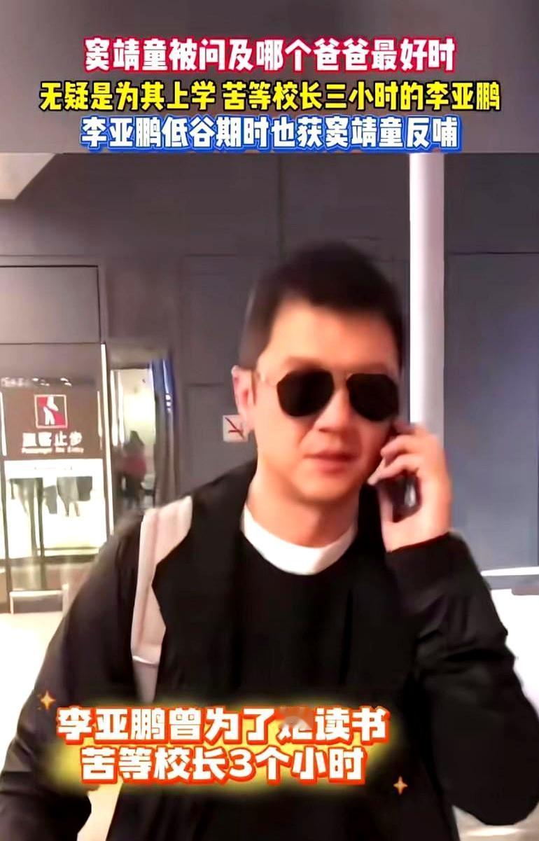 记者问窦靖童:哪个爸爸最好? 她卡壳。 窦唯给了她自由的魂,李亚鹏给了她落地的命。 上学,李亚鹏在校门口冻三小时,就为一张入学条。 狗咬了她,他连跑五趟医院,剧组都不回。 她考满分,他直接送宠物猪,外加一堆吉他。 后来李亚鹏翻车,欠债限高。 窦靖童没废话,卖黑胶,捐嫣然,再空降直播间,一声“爸”把销量顶到几百万。 医院欠租2600万,网友冲进来捐了1400万,手术继续做。 血缘?真不算啥。 认谁当爸,看的是谁在深夜陪你打针,谁在落魄时还惦记唇腭裂的孩子。