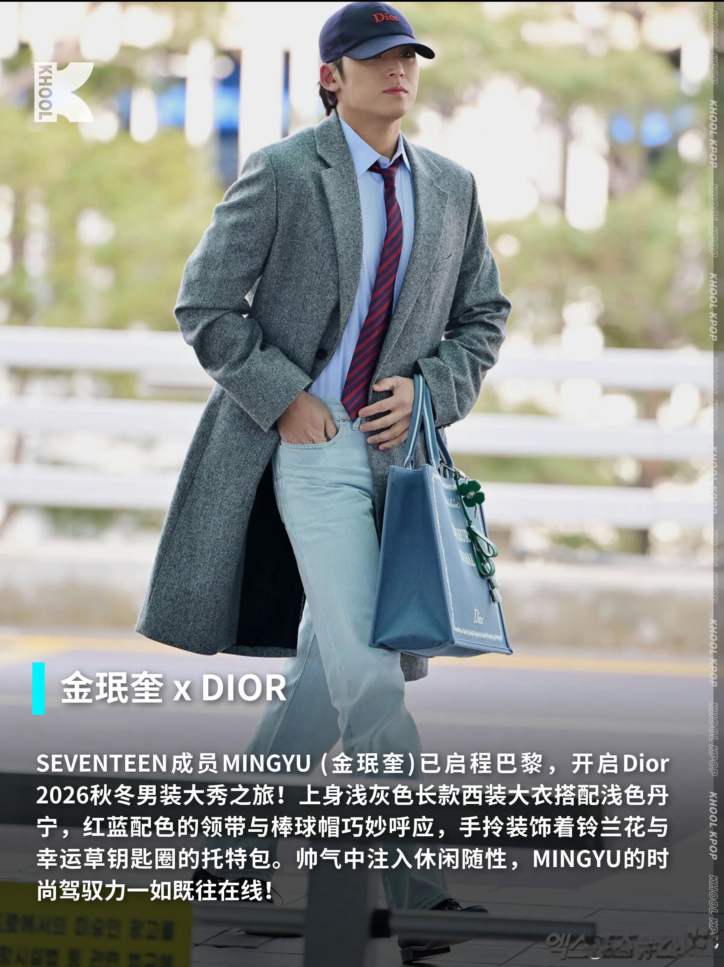 男装周巴黎男装周 金珉奎启程巴黎时装周,出席DIOR大秀SEVENTEEN成员MINGYU(金珉奎)已启程巴黎,开启Dior 2026秋冬男装大秀之旅🇫🇷上身浅灰色长款西装大衣搭配浅色丹宁,红蓝配色的领带与棒球帽巧妙呼应,手拎装饰着铃兰花与幸运草钥匙圈的托特包,帅气中注入休闲随性,MINGYU的时尚驾驭力一如既往在线!大秀日程巴黎时间:2026年1月21日(周三) 14:30北京时间:2026年1月21日(周三) 21:30