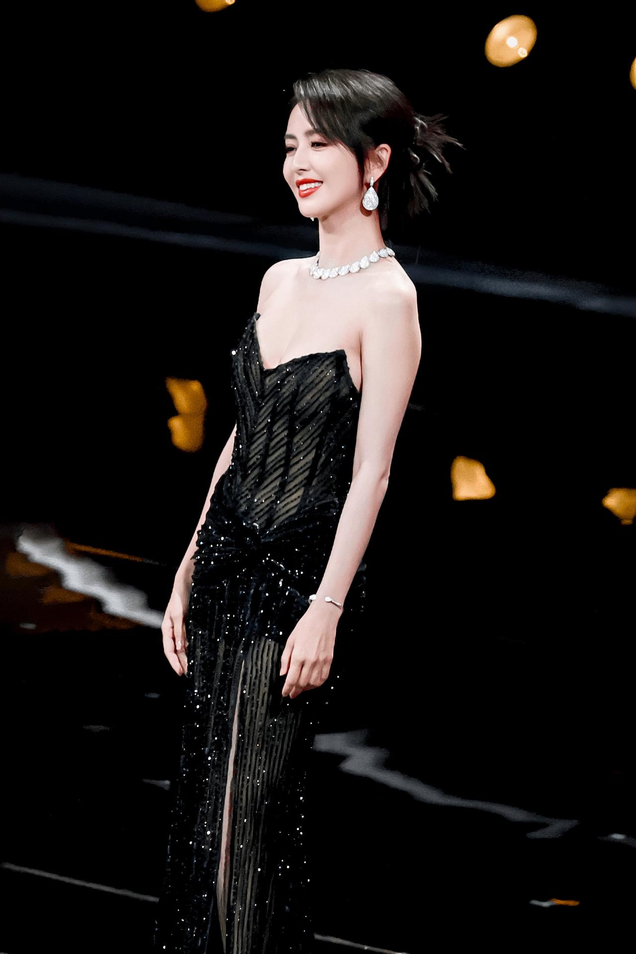 佟丽娅这身材杀疯了🔥 抹胸透视黑裙自带闪耀碎钻,性感御姐风直接封神!又美又飒,这状态谁看了不迷糊?