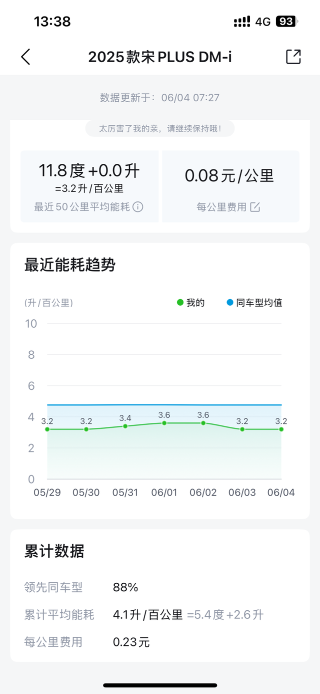 没跑高速 全部来自市区通勤以及周别,第一次买绿牌不知道这个能耗怎么样,个人感觉比之前蓝牌的油耗好太多了