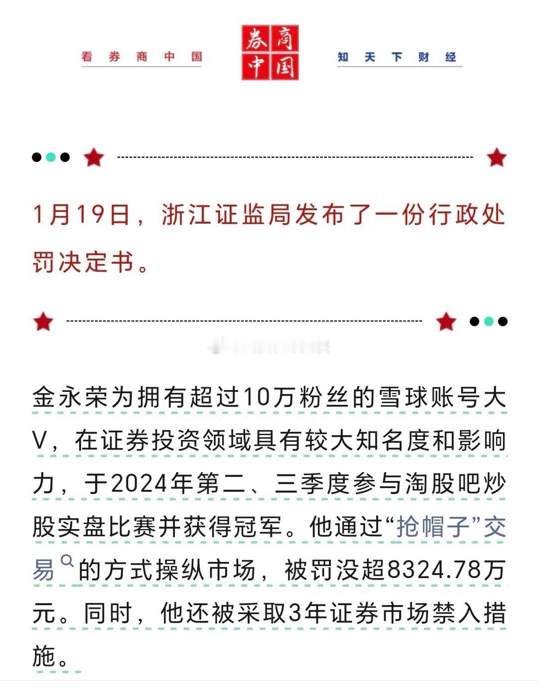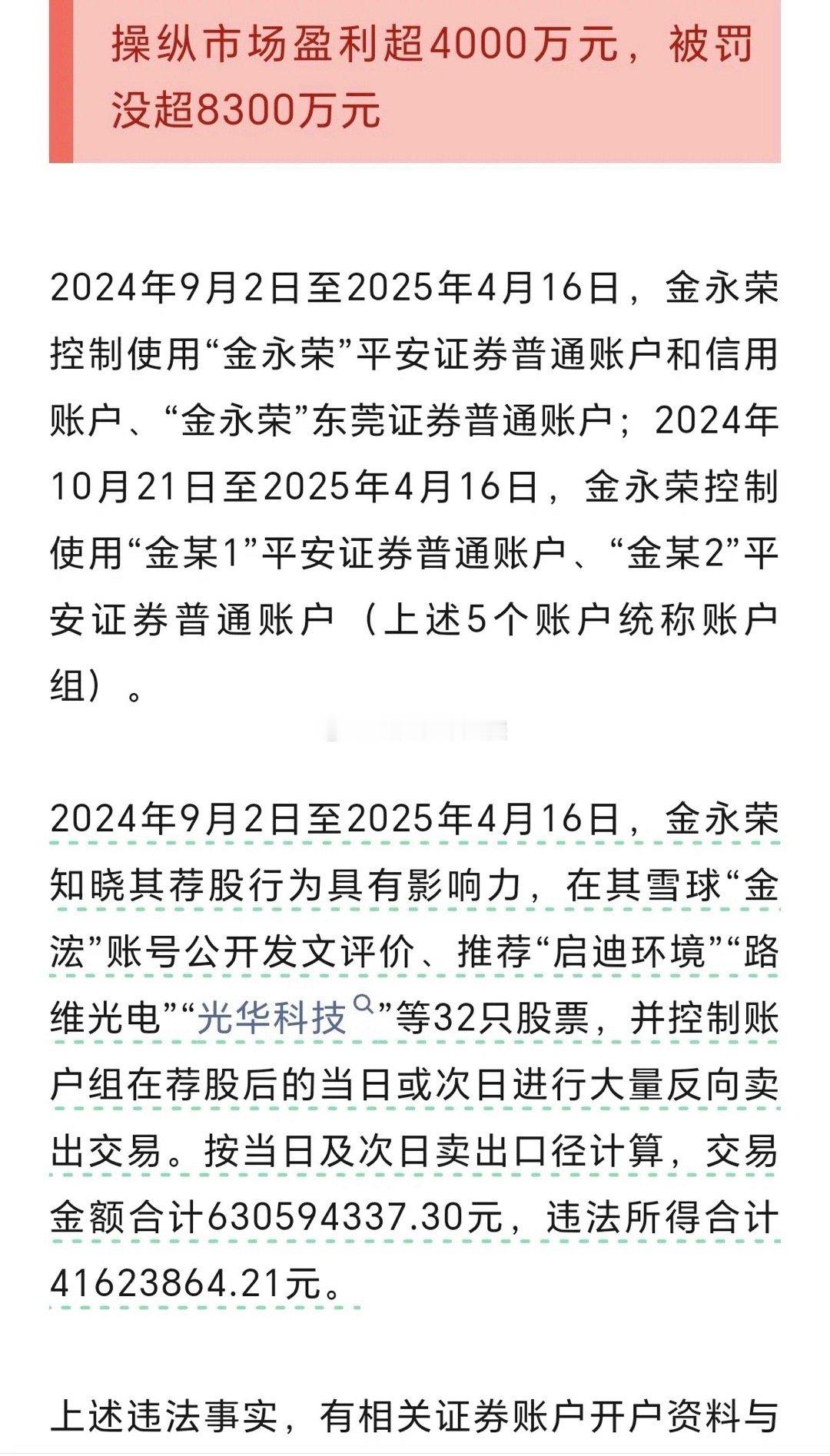 昨天有个最新消息,有个炒股大V被证监会给处罚了,连罚款带没收啥的,得有8000多万了。这大V炒股技术其实还不错,还拿过炒股比赛的冠军呢。但光靠自己实力赚钱,来钱太慢了,他最后就走上骗粉丝这条路了。他在互联网平台雪球上吹票,把那只票说得天花乱坠的,让粉丝们都买进。结果第二天他自己就赶紧卖了,赚钱速度那叫一个快。就这么短时间,他赚了4000多万。这次可被狠狠处罚了,不光没收了这4000多万,还额外罚了4000多万。像他这种操纵股市的行为,在美国可是要坐牢的。咱这处罚也够他受的了,估计得破产咯。
