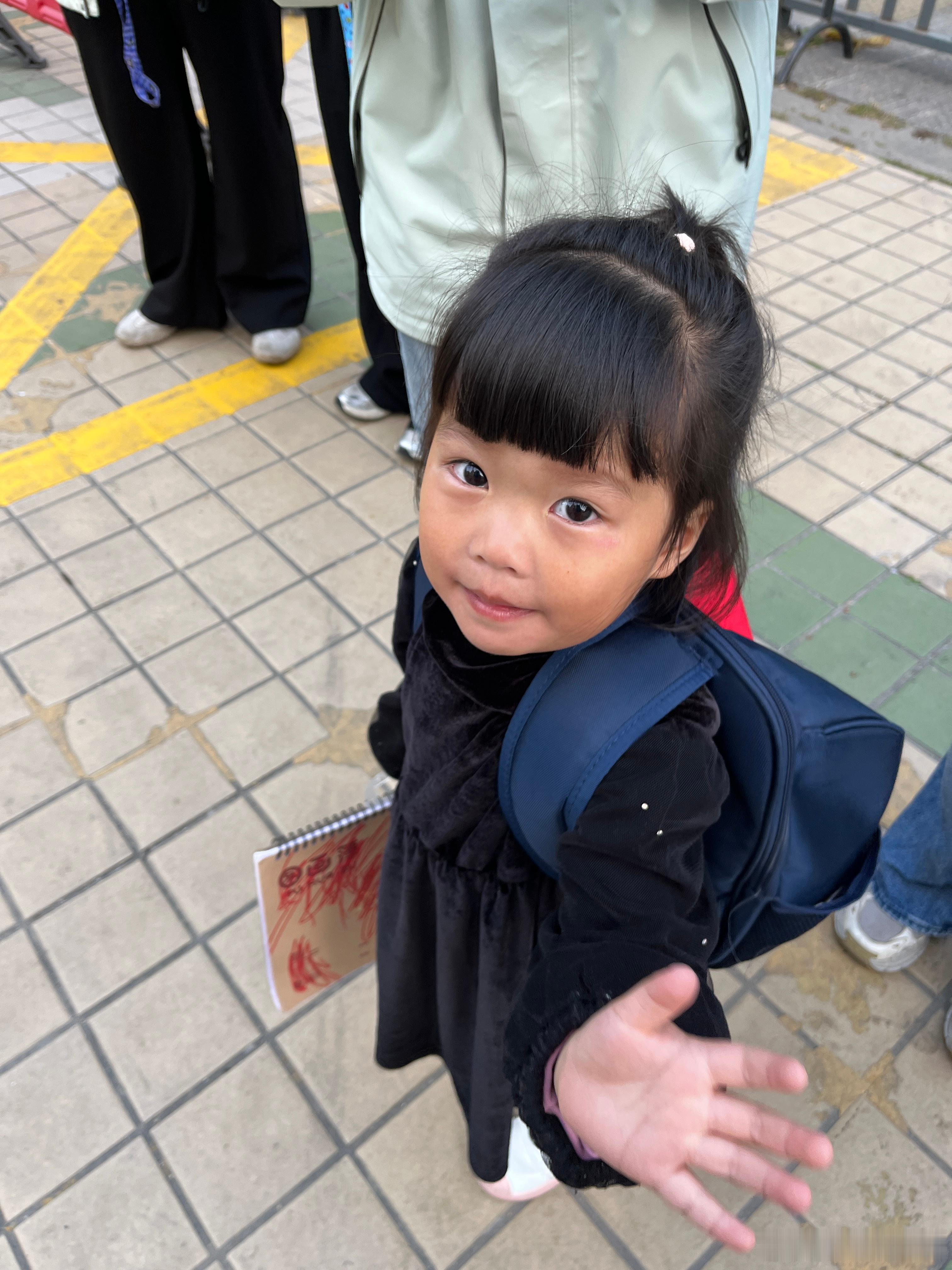 上学了,昨天的画本都忘记拿,今天又差点忘记,还好柠宝看到,自己拿来。上个周末的作