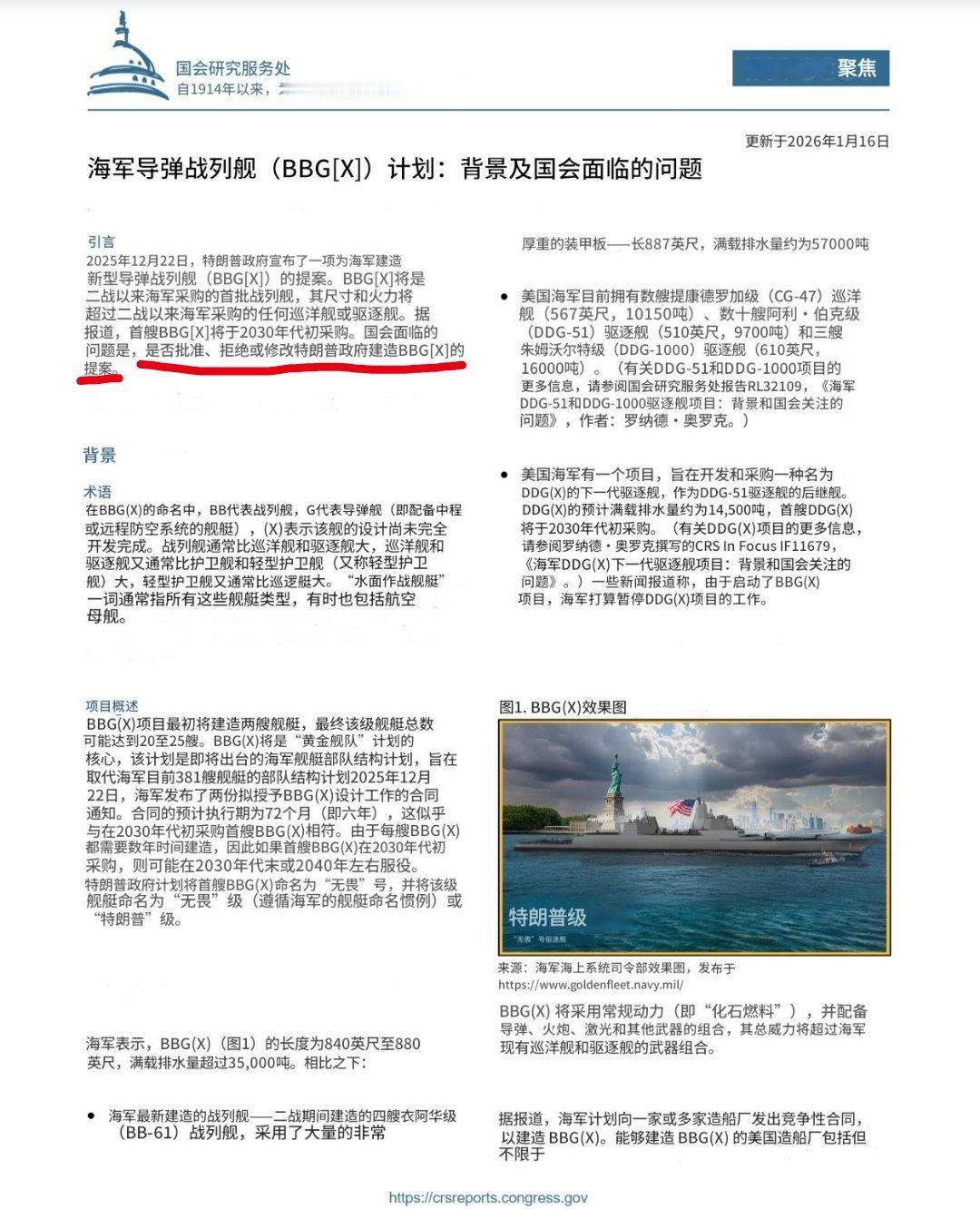 特朗普级战列舰单价超福特级航母——美国国会发布的关于特朗普导弹战列舰的报告,关于造价部分:如果特朗普级首舰在2030财年采购,其成本(包括设计成本)将高达176~189亿美元(而且是2025财年的美元),后续每艘造价也将高达122~131亿美元。相比之下,阿利伯克级驱逐舰目前造价27亿美元,当前在建的福特级航母4号舰多里斯·米勒号(CVN-81)的采购成本约为152亿美元。➤美国的军费高是有道理的啊烽火问鼎计划热点观点