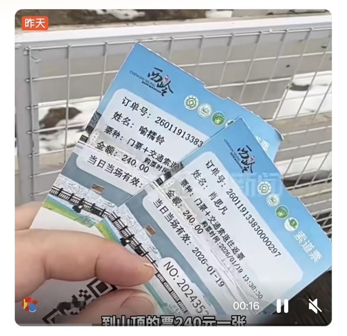 1月19日,多名游客投诉四川西岭雪山景区存在二次收费问题:游客购买240元门票登顶后,发现雪地活动区域被围挡,参与项目需额外支付88元/项的费用。景区官方已回应称收到相关反馈,将尽快整改不合理收费项。