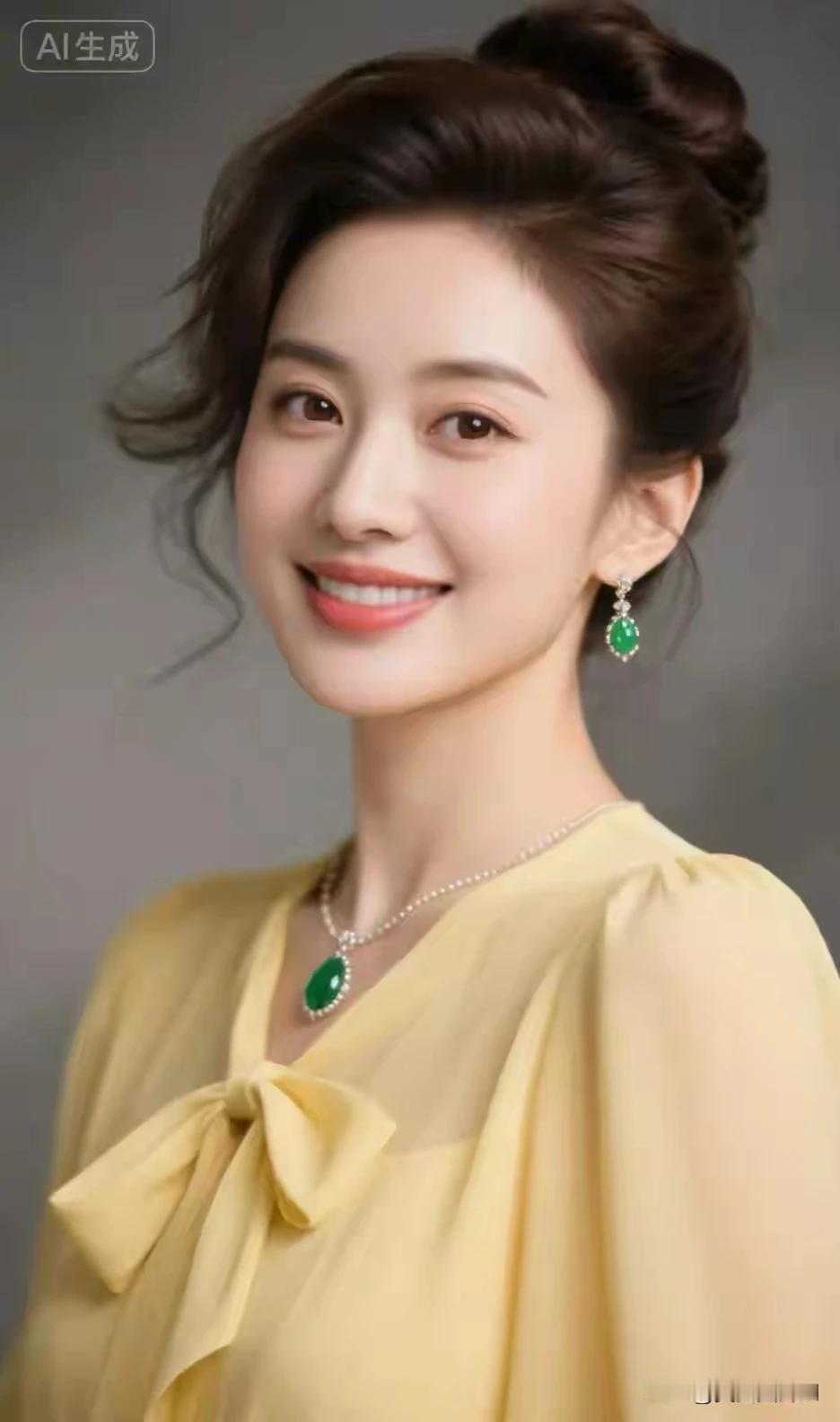东方佳丽,貌似天仙 一抹黄色,雪纺衬衫 时尚优雅,国色天香 婀娜多姿,美丽动人 出水芙蓉,秀色可餐 窈窕淑女,君子好逑 微微一笑百媚生, 眼含秋水映流星。