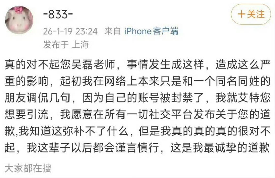 白珊珊致歉吴磊:同名同姓的锅?这波反转我看愣了 谁懂啊!白珊珊向吴磊道歉 词条光速冲上热搜,这道歉速度比我追剧快进还猛! 前脚刚闹得沸沸扬扬,后脚小姐姐就出来澄清:纯属同名同姓闹乌龙!咱就是说,这年头撞名也能撞出一场吃瓜大戏。 讲真,看这姑娘颜值在线,真心觉得不至于搞事情。吃瓜群众散了散了,给人家一次机会嘛!以后发言可得擦亮眼睛,别再让同名同姓背锅啦!