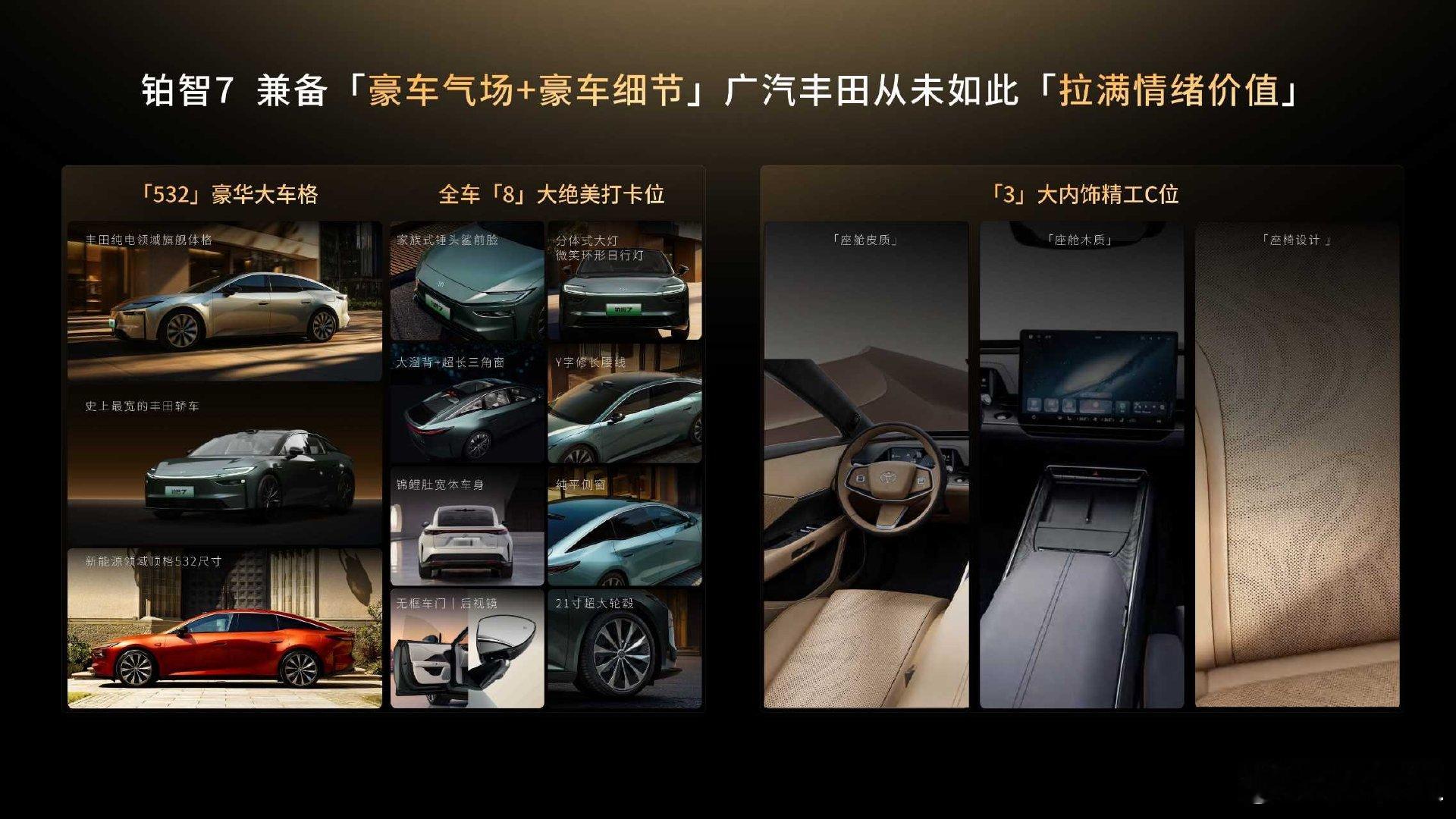 丰田豪华旗舰铂智7定于3月上市铂智7把豪华五大件一次性配齐铂智7是丰田最宽轿车+同级最长车长,还有山水车色、天然真木饰板,颜值质感双在线