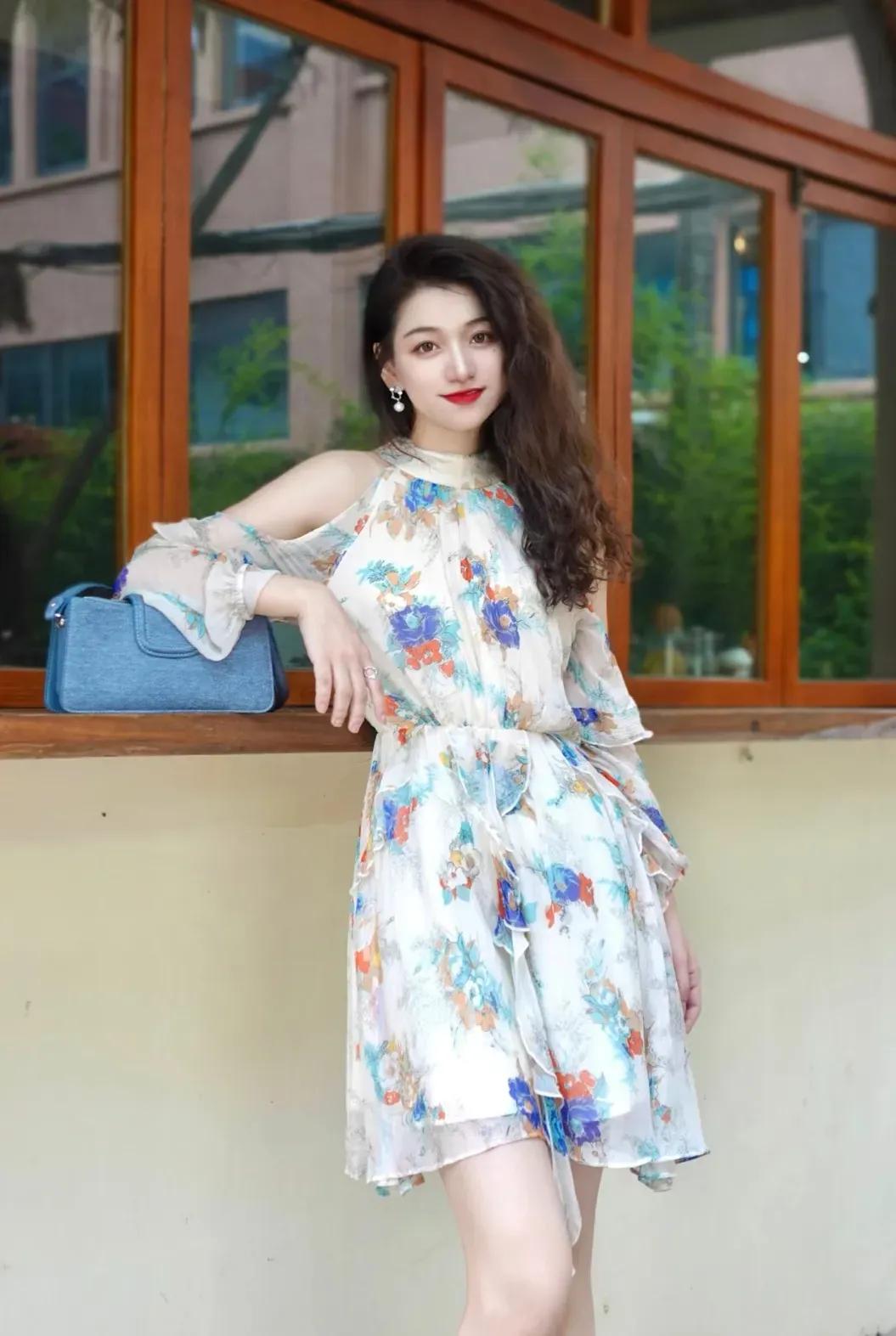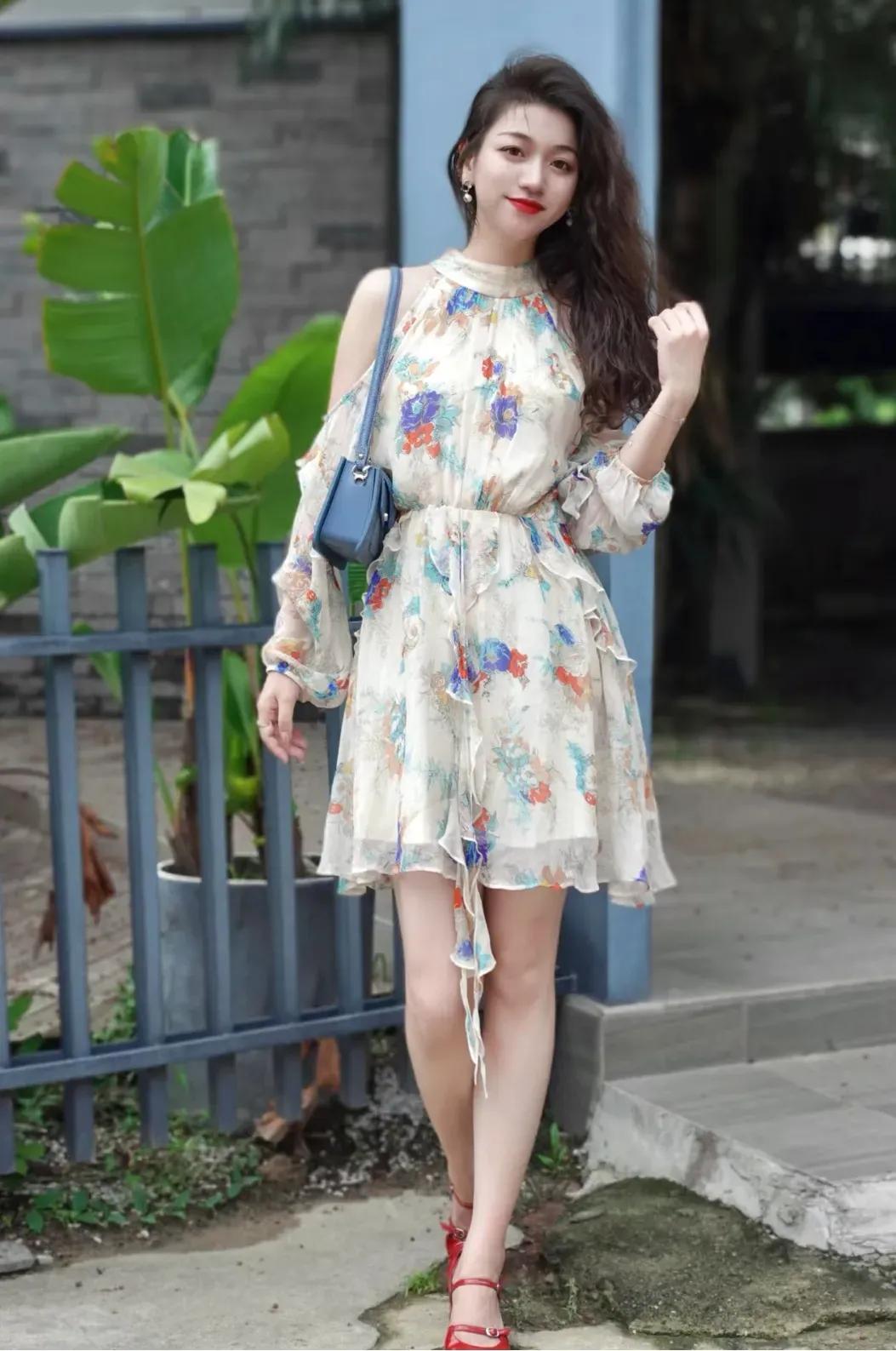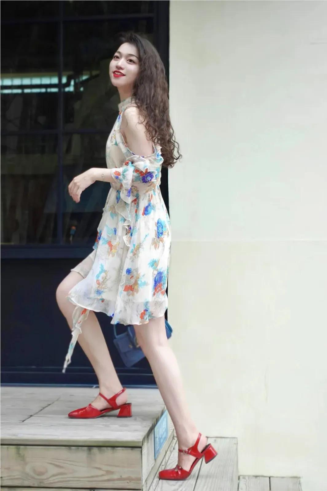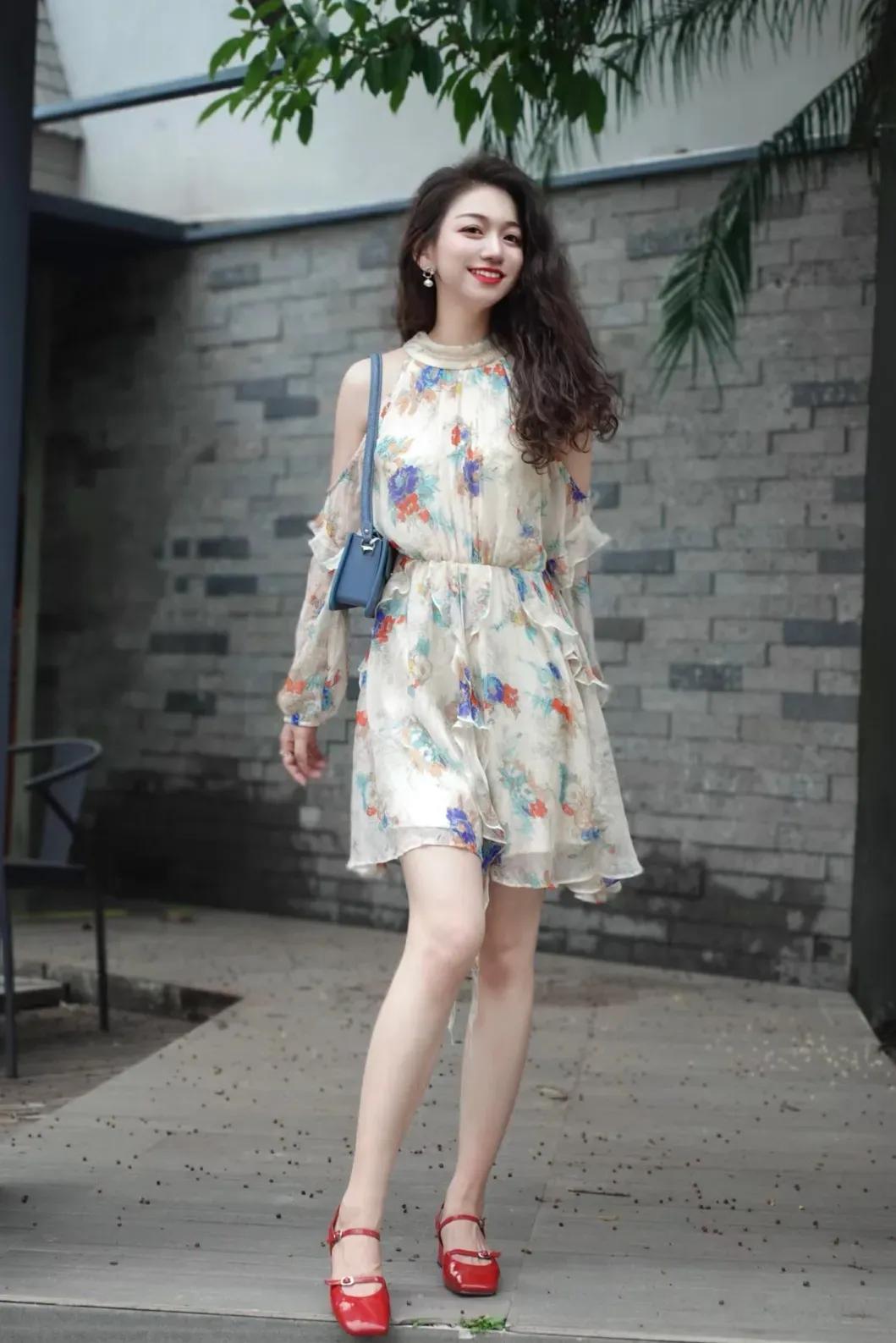 这套穿搭是浪漫轻熟的碎花风,把柔美碎花与小心机设计融合。米底碎花连衣裙自带浪漫氛围,露肩+荷叶边细节添轻熟感,收腰版型显轻盈得体。 搭配蓝色小包中和了裙装的柔美,添了点清新质感;红色漆皮鞋提亮造型,让浪漫碎花裙更显灵动,充分展现穿着者浪漫轻熟的温柔魅力。气质碎花裙穿搭 温柔碎花裙穿搭 碎花夏天穿搭 碎花裙穿搭