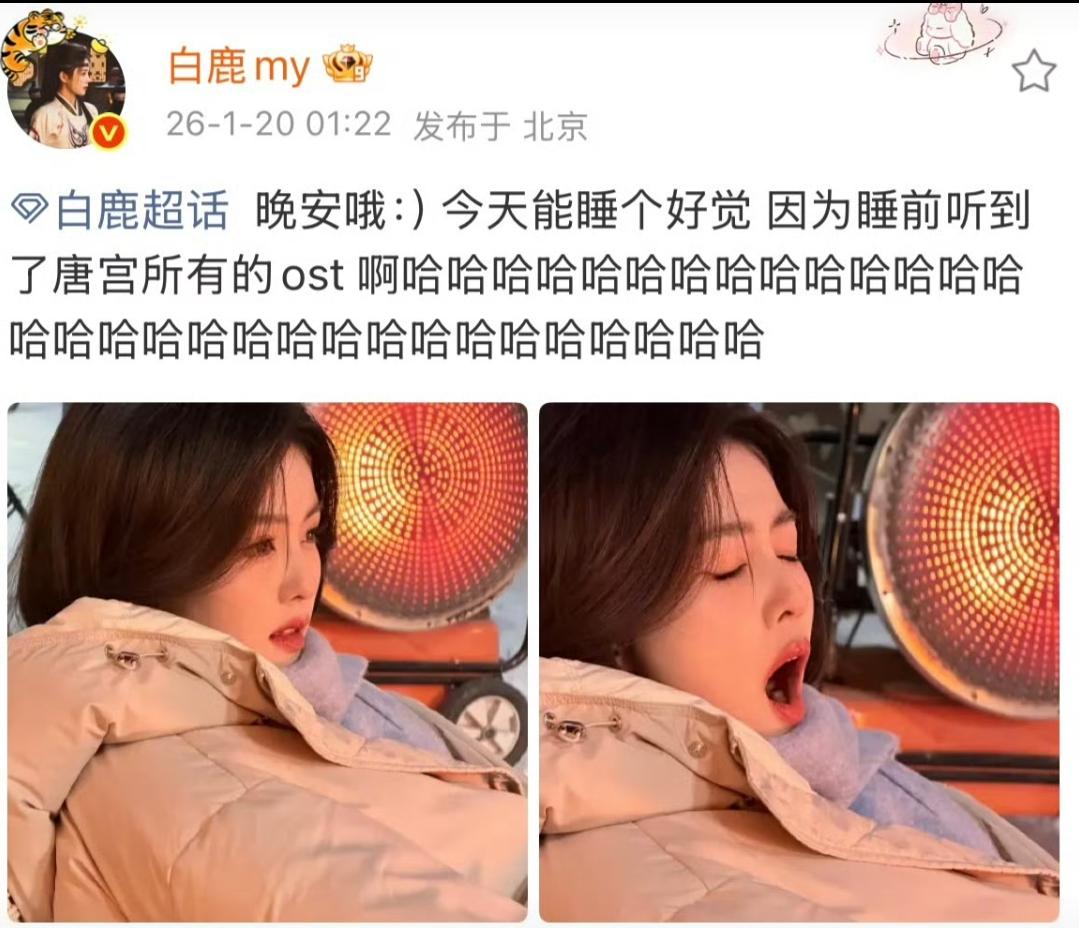 白鹿睡前狂刷唐宫OST!这波“自来水”安利我服了 谁懂啊!白鹿这波深夜追剧DNA直接动了!晒照说睡前循环了《唐宫》全系列OST,还在线喊话期待和李佩仪见面,更cue到“歌手白鹿”的OST首秀,这波双厨狂喜直接戳中追剧人的心巴! 咱就是说,自家演的剧+自己唱的歌,这波梦幻联动谁能顶得住?隔着屏幕都能感受到她对角色的热爱,妥妥的沉浸式追剧人,已经开始蹲她的OST单曲循环了!