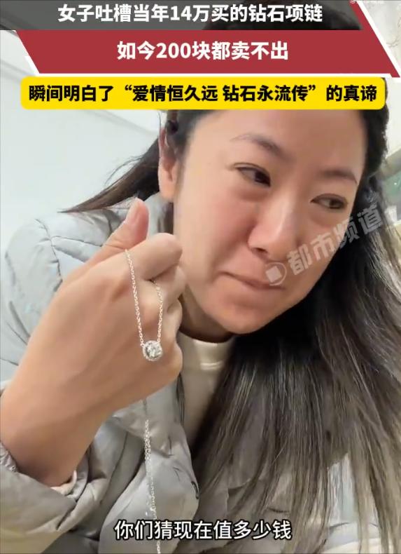真的亏哭了!”广东,一女子10年前结婚时,花14万买了一条钻石项链,最近手头紧想