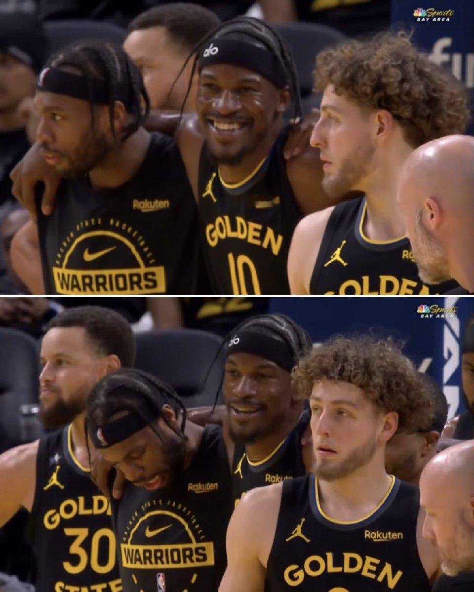 吉米真是条硬汉,他几乎都走不动路了 脸上却还挂着笑容。本场比赛不会打了。 第三节结束,勇士104-93热火。比赛正朝着勇士胜利的方向走,热火难了!
