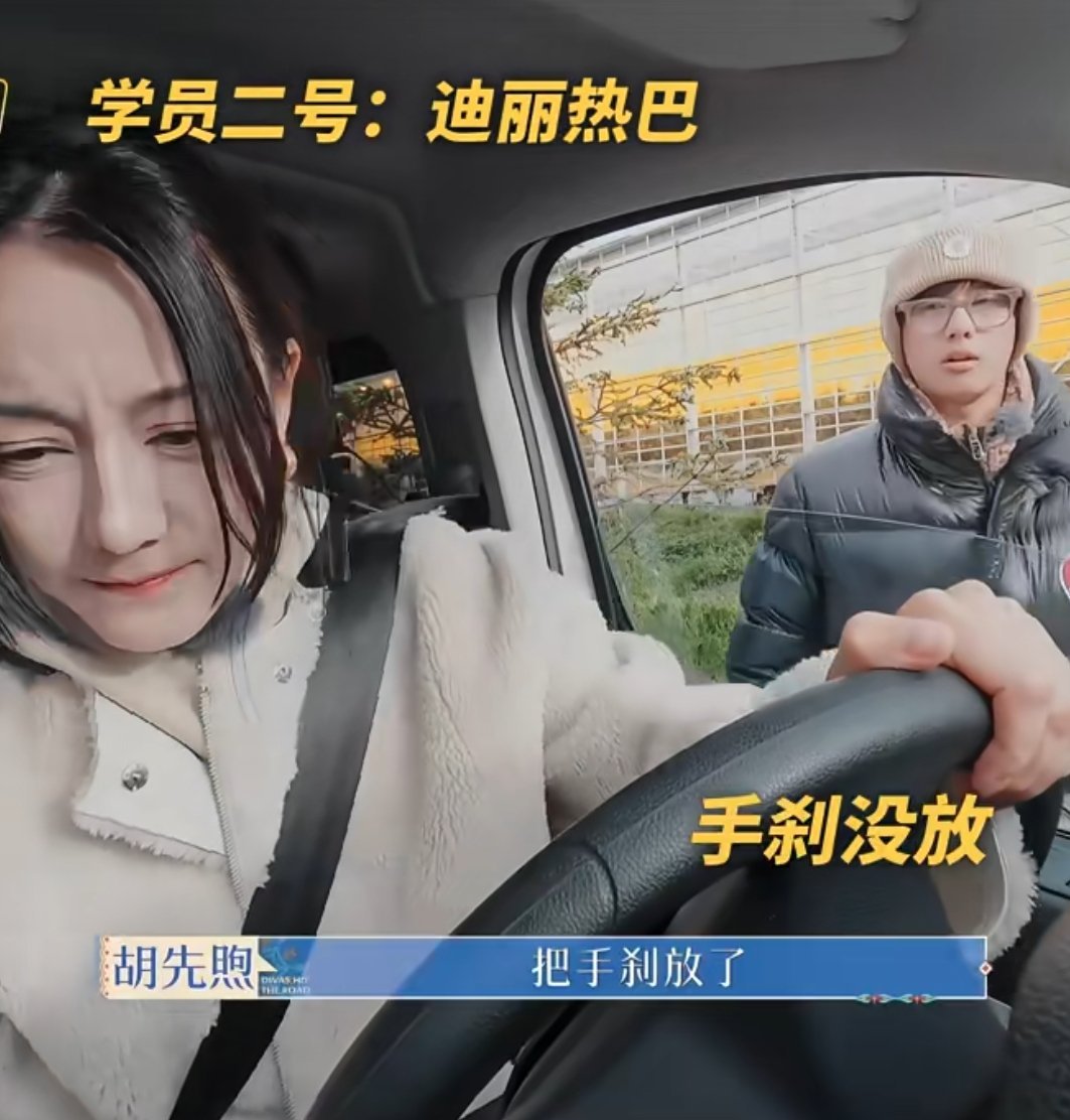 内娱驾校教练胡先煦指导学员们(辛芷蕾,迪丽热巴,王安宇)使用手刹的那些场面~