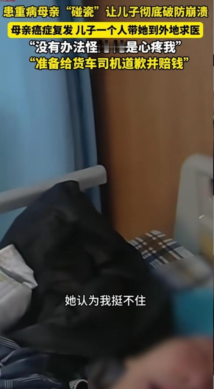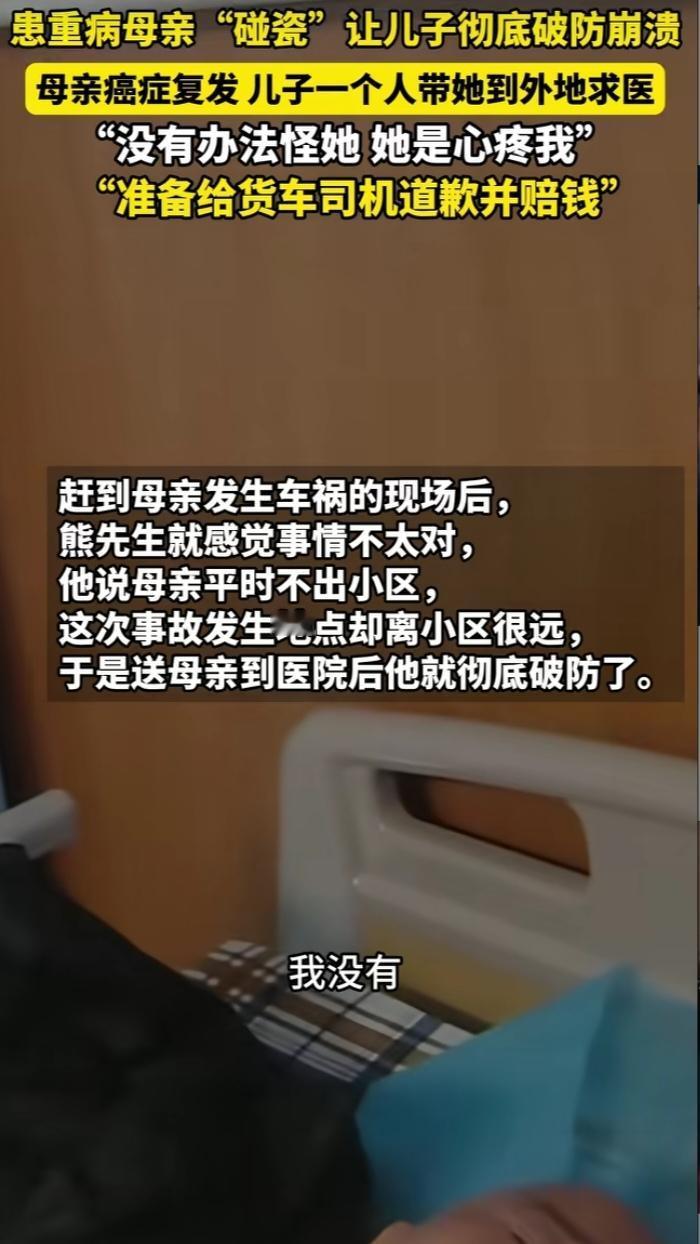 近日,湖北武汉一则“碰瓷事件”的反转,让千万网友感受到善意的温度。64岁的老人因患口腔癌,癌细胞已转移至脑部,为减轻儿子负担,她偷偷溜到一公里外的马路上“碰瓷”大货车,幸无大碍却被交警联系家属。 单亲家庭长大的儿子熊先生赶到医院后,通过监控证实了猜测,情绪激动地在病床前怒斥母亲:“你不要祸害别人,别人也有家庭要养!”这段视频被他发布到网上,本意是提醒他人避让,却意外收获超千万播放量。网友们没有过多指责,反而读懂了老人背后的无奈——确诊以来,家庭已承担11万余元治疗费,老人曾多次流露放弃治疗的念头。 善意如潮水般涌来:学生省下零花钱转来10元、普通上班族捐赠50元、爱心人士转账千元,陌生网友1元、10元地接力,很快凑齐2万余元治疗费。武汉本地养老院还主动提出免费提供护理服务。面对这份沉甸甸的善意,熊先生既感动又有压力,他表示现有捐款已能应付近期治疗,后续将不再接受捐款。 这场始于“碰瓷”的意外,最终在孝心与善意中落幕。熊先生的坚守底线与网友的共情相助,让寒冬里的武汉充满暖意,也印证了人间自有真情在,平凡善举亦能汇聚成照亮困境的光。车碰瓷 碰瓷纠纷 老年人碰瓷