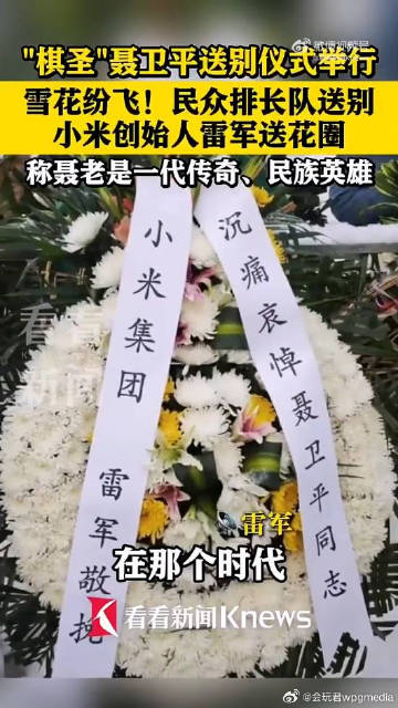 雷军送花圈沉痛悼念聂卫平聂老一路走好