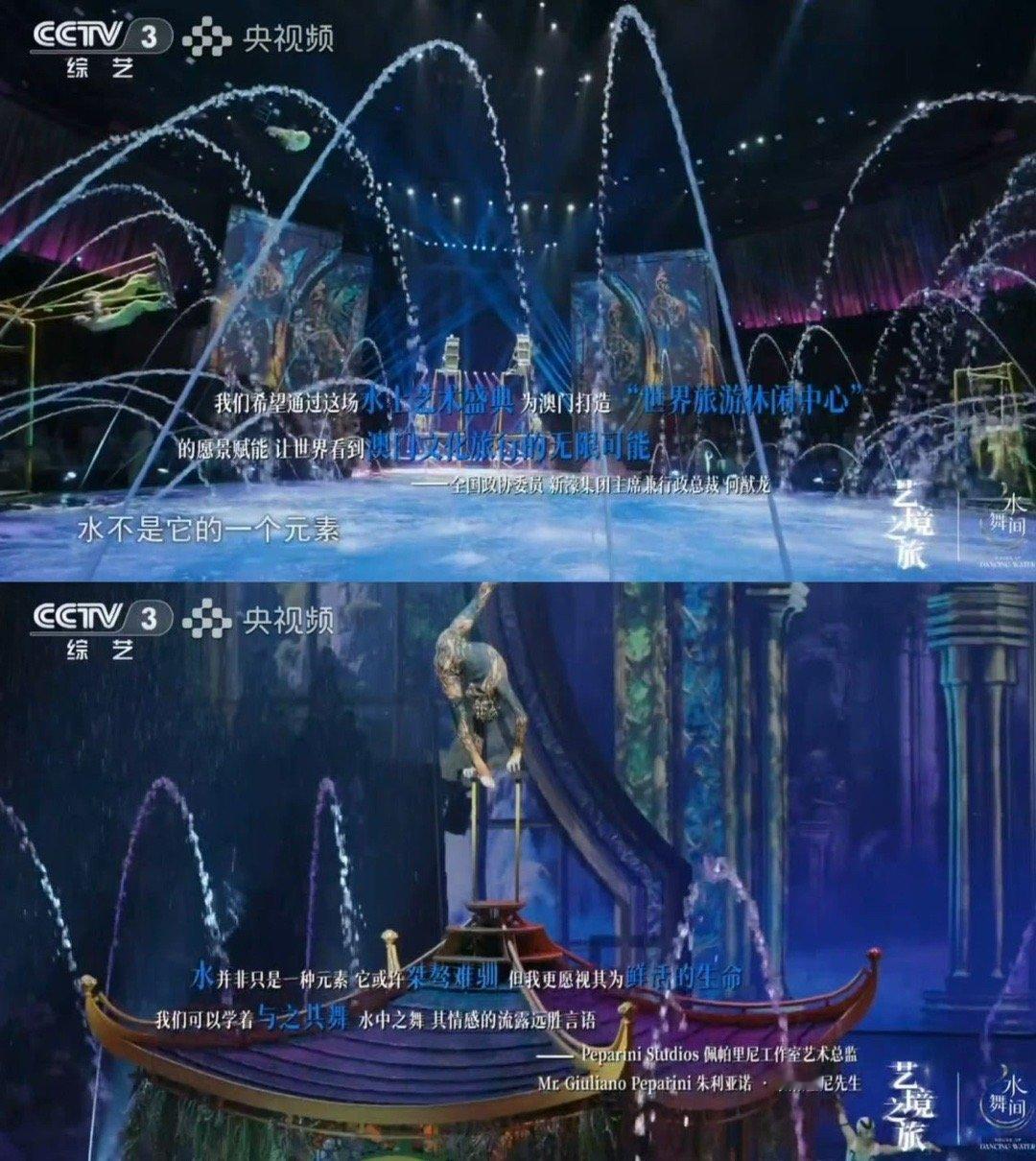 第一次在综艺里见300多人表演 澳门《水舞间》太震撼!三百多位多国演员同台,1700万升水池秒变陆地,18米喷泉+激光矩阵超吸睛。看朱迅陈乔恩目瞪口呆的样子,这才是世界级视听盛宴!