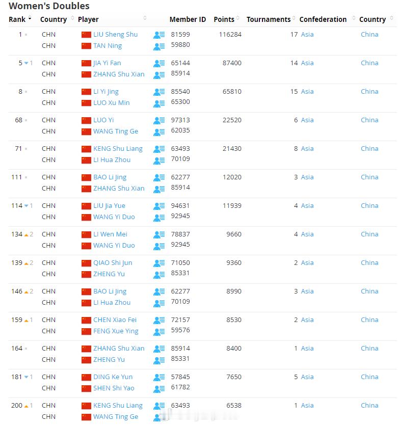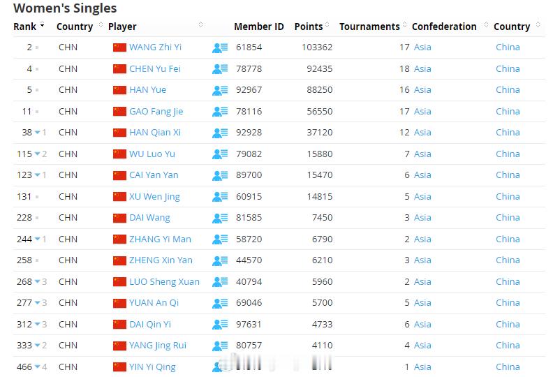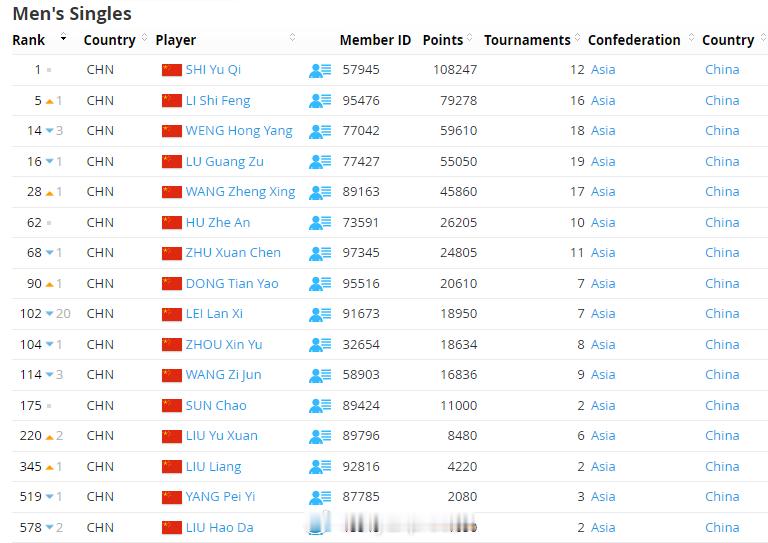 【世界羽联排名0120:梁王重返前三】世界羽联排名 1月20日,世界羽联公布了最新一期羽毛球选手世界排名,在印度夺冠的梁王组合排名上升两位至第三。国羽详细排名:男单石宇奇1、李诗沣5、翁泓阳14、陆光祖16、王正行28、胡哲安62;女单王祉怡2、陈雨菲4、韩悦5、高昉洁11、韩千禧38;男双梁伟铿/王昶3、陈柏阳/刘毅12、胡珂源/林祥毅88、黄荻/任翔宇192、陈旭君/刘阳262;女双刘圣书/谭宁1、贾一凡/张殊贤5、李怡婧/罗徐敏8;混双冯彦哲/黄东萍1、蒋振邦/魏雅欣2、郭新娃/陈芳卉6、程星/张驰16、高家炫/吴梦莹22、朱一珺/李茜94。