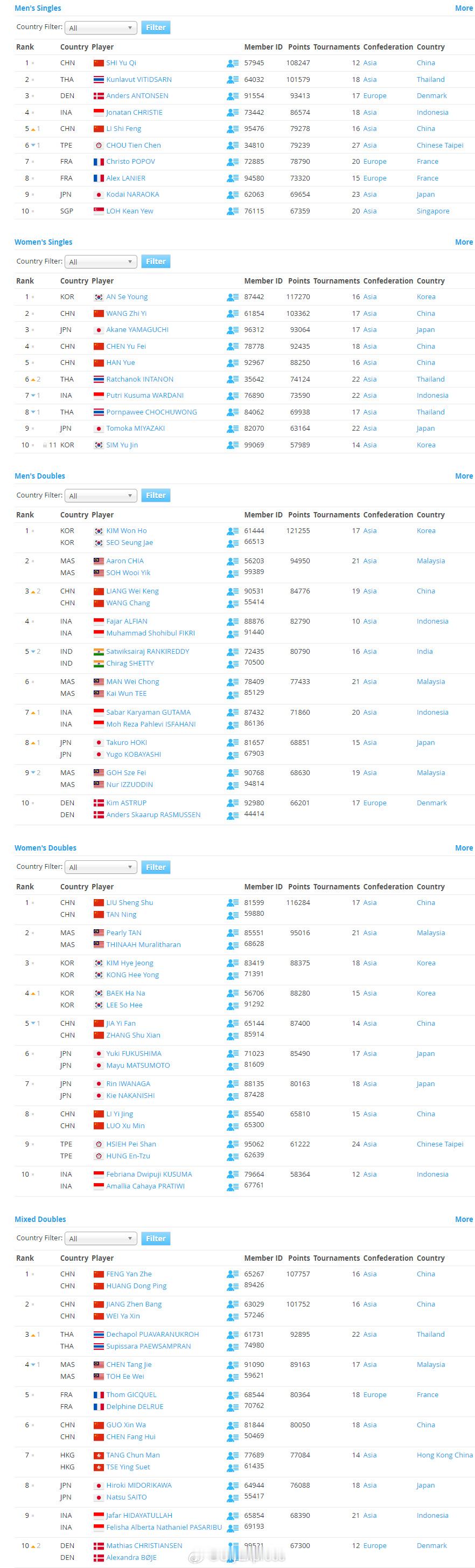 【世界羽联排名0120:梁王重返前三】世界羽联排名1月20日,世界羽联公布了最