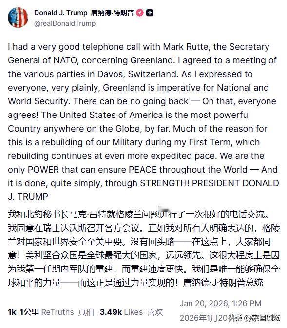 #特朗普谈格陵兰岛再提对8国加税#【特朗普:若未就格陵兰岛问题达成协议,“100