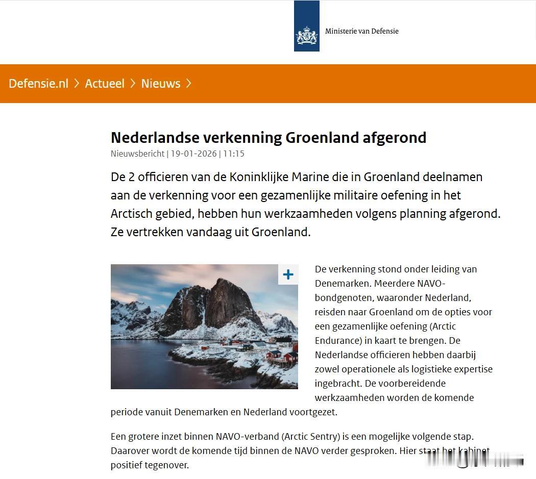 丹麦向格陵兰岛大规模增兵,约100名士兵已派往首府努克,另外约100名士兵派驻在