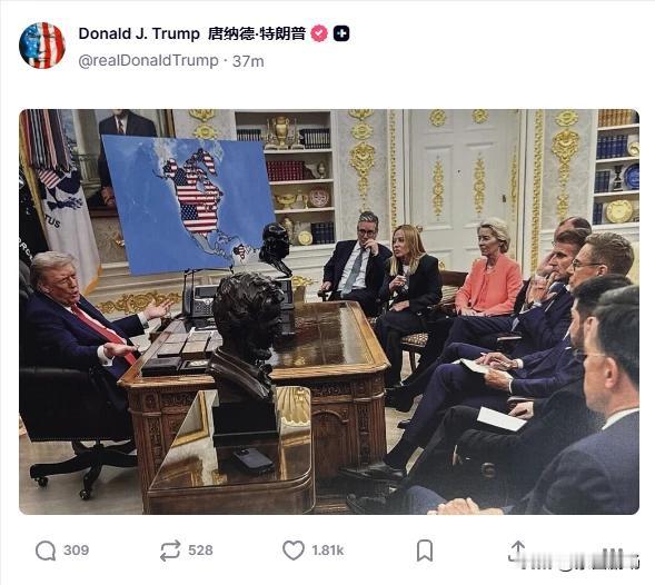 仔细看特朗普发的这张图,除了美国、加拿大、格陵兰,居然连委内瑞拉也被涂成了星条色