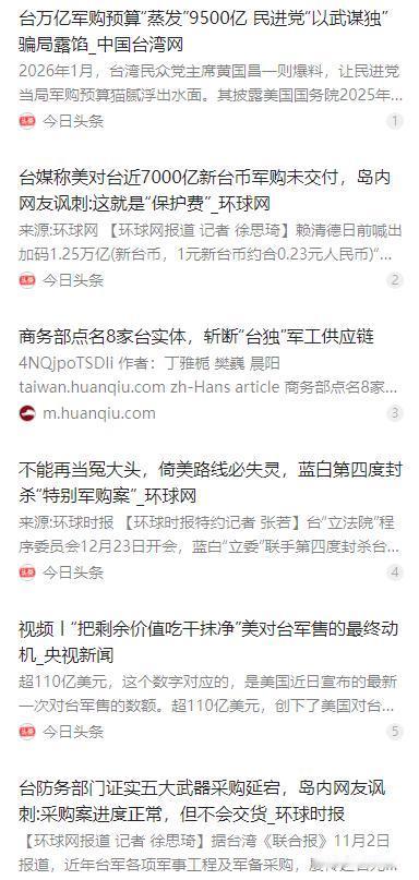 特朗普估计现在很发愁。为啥发愁?因为他手上那笔,卖给台湾的110亿美元武器大单,眼看要黄了。不是不想卖,是东西可能根本运不过去了。 麻烦看官老爷们右上角点击一下“关注”,既方便您进行讨论和分享,又能给您带来不一样的参与感,感谢您的支持!   特朗普最近肯定坐立难安,他力推的那笔 110 亿美元对台军售大单,如今正朝着 “黄了” 的方向一路狂奔。不是他不想卖,也不是台湾不想买,而是这笔看似一本万利的买卖,现在处处都是迈不过去的坎,眼看着就要竹篮打水一场空。   核心问题先摆在这:66 架 F-16V 战机作为这笔军售的重头戏,根本没法顺利送到台湾。台海航线早就处于严密监控之下,任何涉台军售运输行为都逃不过眼睛,周边国家的中转港也都明事理,没人愿意冒着风险配合这种干涉他国内政的事,运输通道等于被直接堵死。   更麻烦的是,战机生产本身就卡了壳。大陆早就出台了针对性的出口管制措施,把 8 家参与 “台独” 军工生产的台湾实体列入管控名单,禁止出口两用物项,像稀土、锗、镓这些制造先进战机必需的特种材料和核心电子元器件,现在断了供。   德日等国的供应商也纷纷暂停合作,原本就紧张的全球防务供应链更是雪上加霜。台湾本地负责的 F-16V 战机组装和维修任务,因为缺零件、缺材料,已经全面陷入停滞,就算美方想交货,短期内也拿不出成品。   资金方面更是乱成一锅粥。赖清德当局喊着要搞 400 亿美元的 “特别防卫预算”,实际却编列了 1.25 万亿元新台币的特别军购预算,但这个预算多次被国民党和民众党联手封杀,在 “立法院” 根本排不上审议议程。   在野党明确表示,赖清德连预算要花在哪、怎么执行都讲不清楚,不能让台湾民众当冤大头。这就导致 110 亿美元的军购费用至今没有着落,台湾想付钱都没合法渠道。   美国国内这边也吵翻了天。这笔军售的资金分配引发诸多争议,特朗普的强硬对华政策遭到不少理性声音反对。大家都看明白,这本质就是拿美国的战略利益换军火商的利润,最终只会把中美关系推向危险边缘。   更让特朗普头疼的是,他现在陷入了进退两难的绝境。强行运输战机吧,明摆着触碰大陆的红线,一旦引发军事冲突,后果根本不是美国能承受的,到时候他不仅要丢选票,还得背上历史骂名。   可要是取消订单,损失也同样惨重。110 亿美元的巨额利益泡汤不说,还会被支持者骂成 “软弱”,政治形象一落千丈。他曾想过把武器转售给第三方,但这些装备涉及敏感军事技术,没人敢接手,这个方案只能不了了之。   其实美军售交付延迟早就不是新鲜事,截至 2025 年 10 月,美方累计未交付的对台军售总额已经达到 6751 亿元新台币,相当于台湾 2026 年防务预算的七成。F-16V 战机原本计划 2026 年交付,现在已经延后到 2027 年甚至 2028 年。   这背后有美国国防工业产能不足的原因,与五角大楼合作的主要承包商从 1990 年的约 50 家锐减到现在仅 5 家,供应链瓶颈根本无法短期解决。就算没有其他阻碍,这笔军售也注定要延期。   更讽刺的是,台湾的军购预算本身就充满猫腻。赖清德当局高调宣布的巨额军购预算,被曝光美方实际公布的军购金额不足预算的四分之一,近 9500 亿元新台币的差额去向成谜,岛内舆论一片哗然,质疑这是民进党当局中饱私囊的工具。   台审计部门早就曝光过美军购存在价格虚高、重复收费的问题,雷神公司就曾多收台方约 54 亿元新台币。已交付的武器也状况百出,弹药过期、防弹板发霉,所谓的 “防务升级” 不过是自欺欺人的骗局。   特朗普当初力推这笔军售,打的是一石二鸟的算盘:一方面讨好国内军火商,捞取政治献金和支持率;另一方面试图武装台湾,打造 “刺猬台湾”,阻碍中国统一进程。可他没料到,现实会给他泼这么一盆冷水。   大陆的反制措施精准有力,从供应链到运输通道全面施压;台湾岛内民意沸腾,反对 “以武谋独”、反对充当美国棋子的声音越来越大;美国国内的理性力量也在抵制这种危险的政治投机,多重压力之下,这笔军售的破产已成定局。   这笔 110 亿美元的对台军售大单,最终沦为了特朗普政府政治投机的牺牲品。它不仅暴露了美国激进对台军售计划的虚妄,也再次证明 “台独” 分裂势力和外部干涉势力的图谋注定不会得逞。   台湾是中国不可分割的一部分,这是国际社会公认的事实,任何企图分裂自己国家的行为,都将遭到历史的唾弃。特朗普的发愁,不过是干涉他国内政、推行霸权主义必然要付出的代价,也给那些妄图 “倚美谋独” 的势力敲响了警钟。
