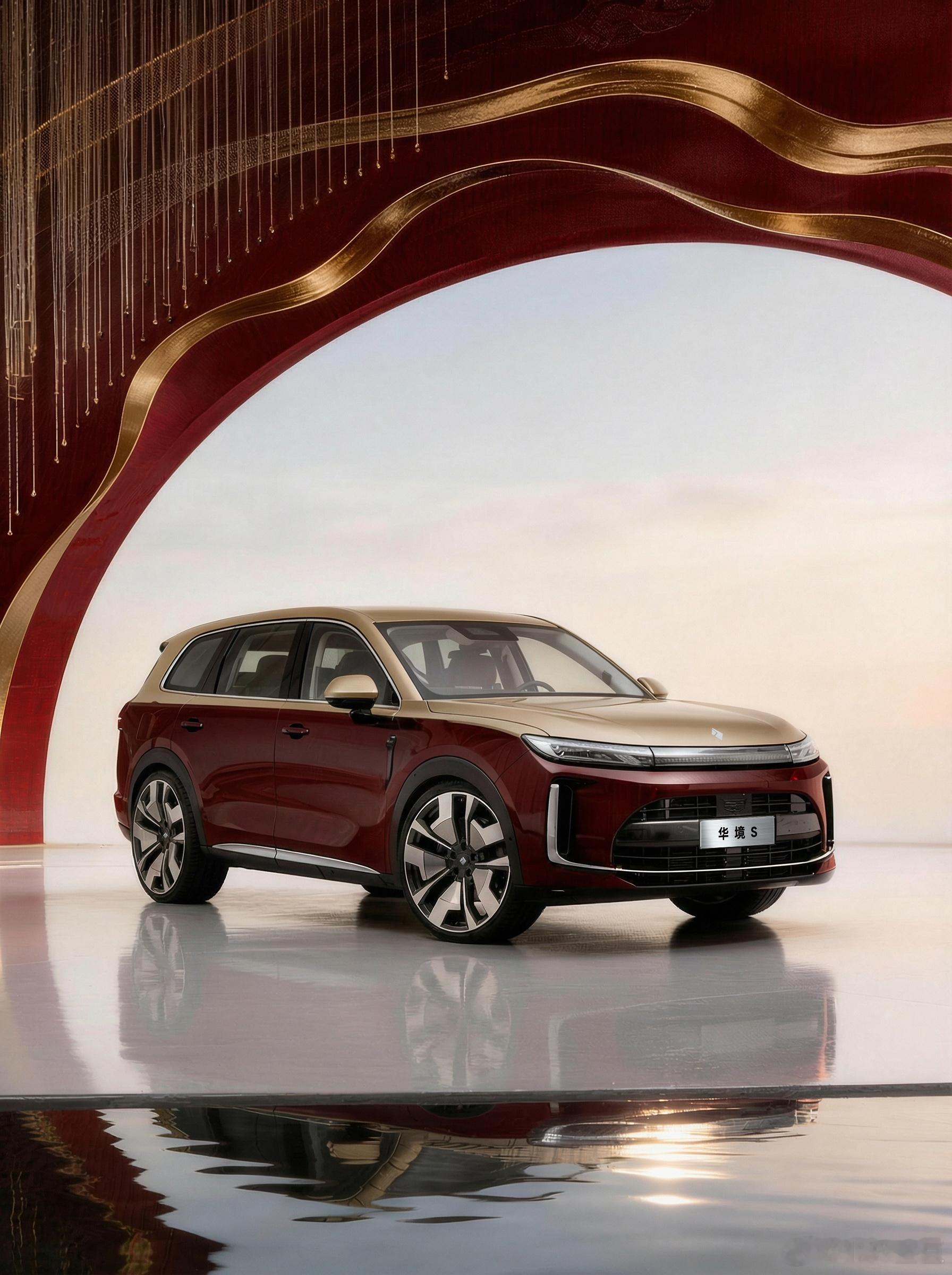 华境 S 来啦,红金配色有点钢铁侠的感觉哎但我感觉后面几张轮毂造型有点不太协调?大家怎么看