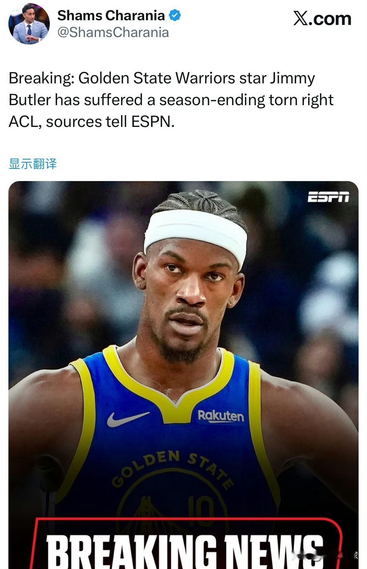 确定了!巴特勒赛季报销!勇士队该何去何从? 就在刚刚,NBA权威记者Shams公布了勇士队球星巴特勒的最新伤情,后者遭遇了右膝前交叉韧带撕裂,本赛季报销。 巴特勒是勇士队攻防两端的重要核心,他的赛季报销无疑会打乱了球队原本的节奏。目前,勇士队刚刚取得了一波四连胜,队内士气正盛,正是一鼓作气的时候进入西部前六的大好时机,但巴特勒的赛季报销无疑给勇士队的前景蒙上了一层阴影。如今勇士队面临重大抉择,是继续这样打下去,破罐子破摔,又浪费库里一年巅峰;还是赶紧发动交易,库明加也好、巴特勒也罢、其他球员也行,赶紧给库里交易来另一个帮手,继续向季后赛发起冲击?
