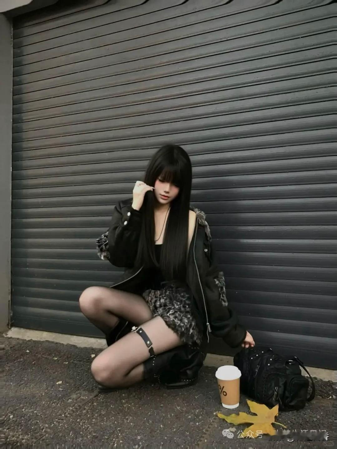 冷风中独自蹲坐,一杯暖咖啡相伴。!
