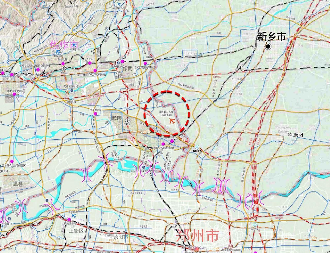郑州第二机场备选地官方已经标注出来了! 从郑新焦一体化发展规划蓝图可以看出,备受关注的郑州第二机场远景谋划建议地址就在平原新区西北、武陟东北,属于焦作武陟与新乡获嘉和平原示范区交汇处。 这个片区有郑太高铁、郑焦城际、S4市域线,还有晋新高速、沿黄高速、郑云高速、郑辉高速、长修高速等。 大家认为官方这个选址地如何呢?一起聊聊吧!