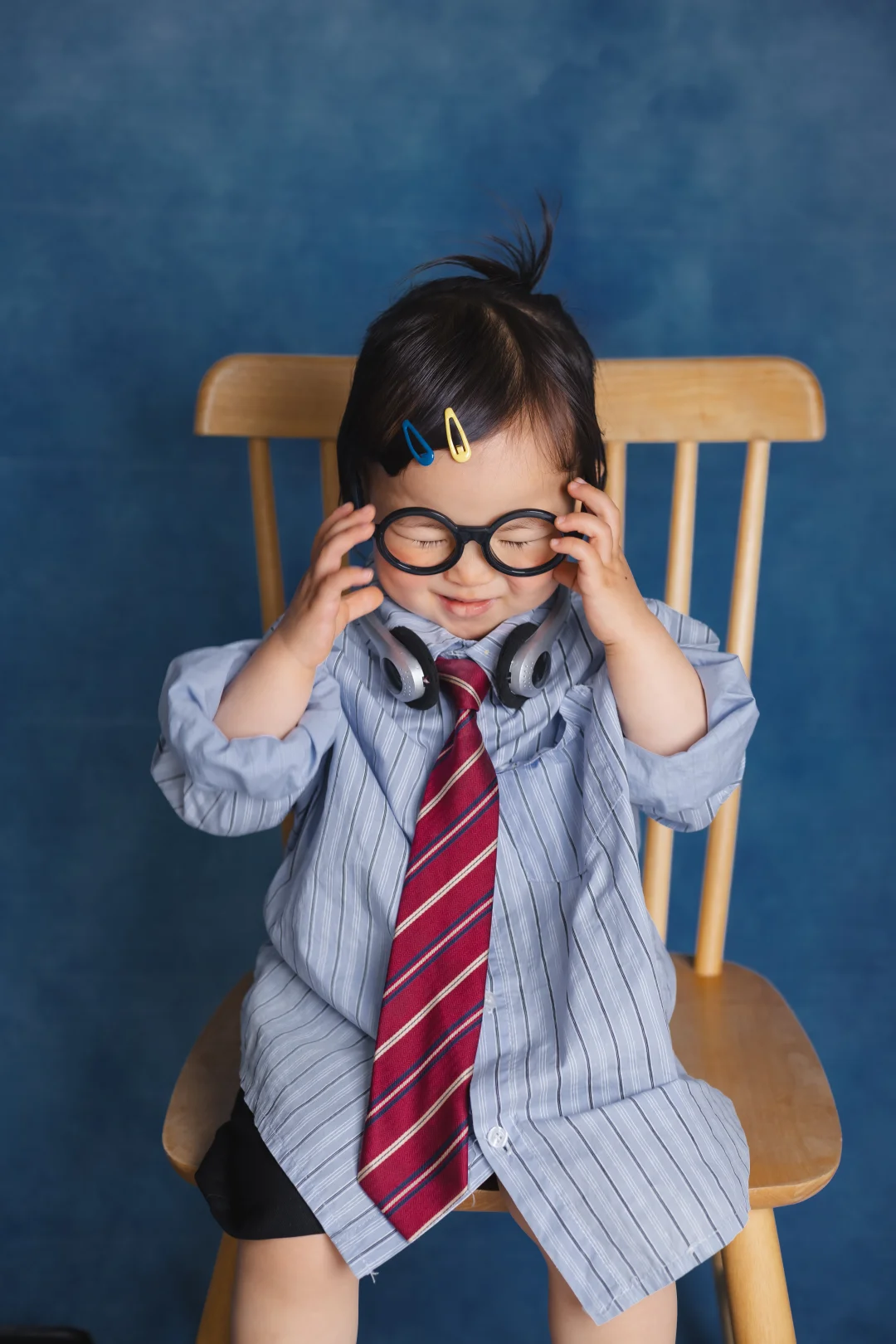 带娃去拍了最近很火的美高照片 有种小孩偷穿大人衣服的萌感 太可爱啦