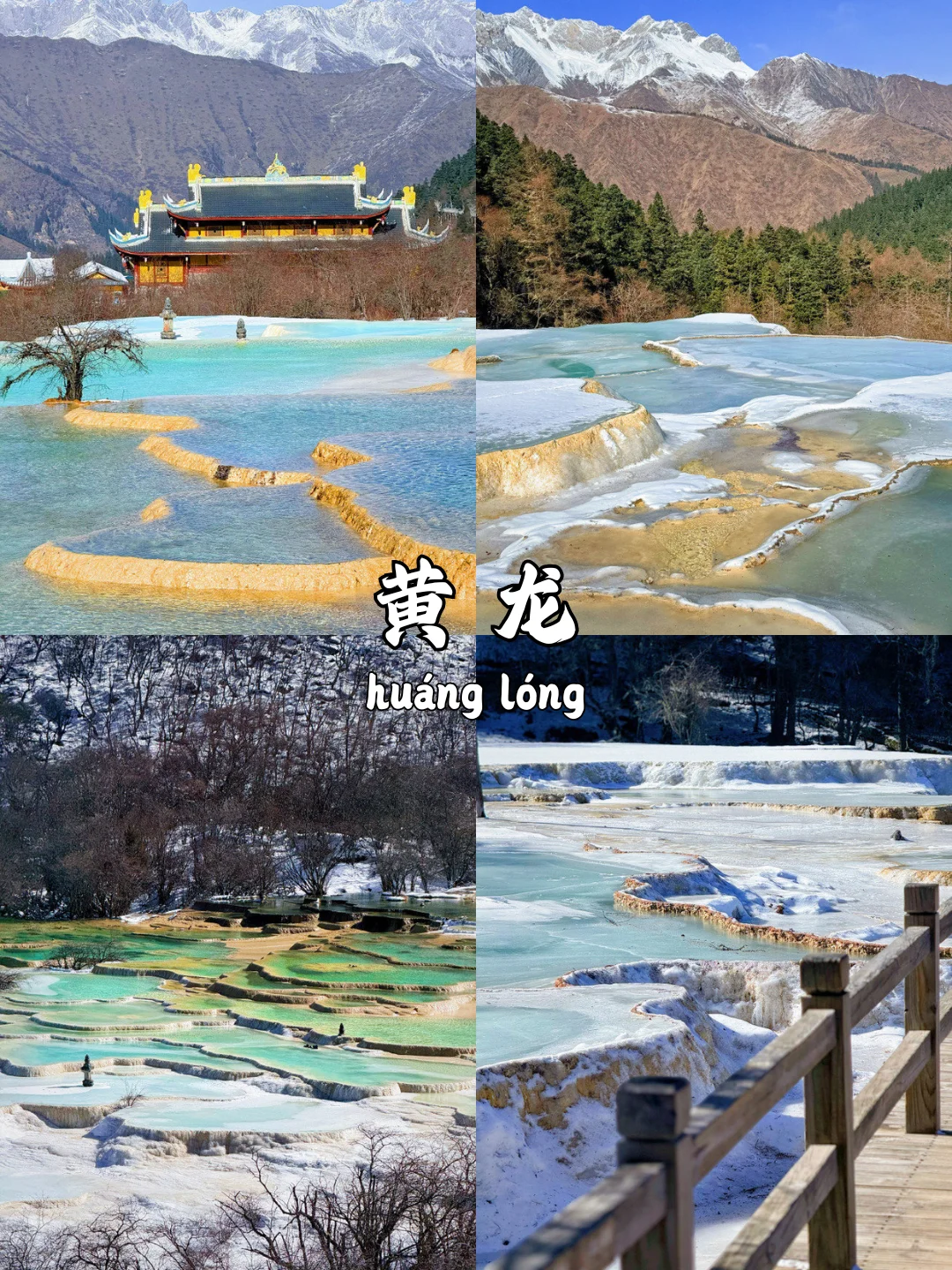 早餐后驱车🚗游览【黄龙】,这是一个以奇幻美丽的钙化池闻名于世的景区,景区内众多的钙化池池水清澈见底,五光十色十分漂亮,还有森林、峡谷、雪山、瀑布等众多的自然风光,被称为“人间瑶池”。游玩结束返程成都。