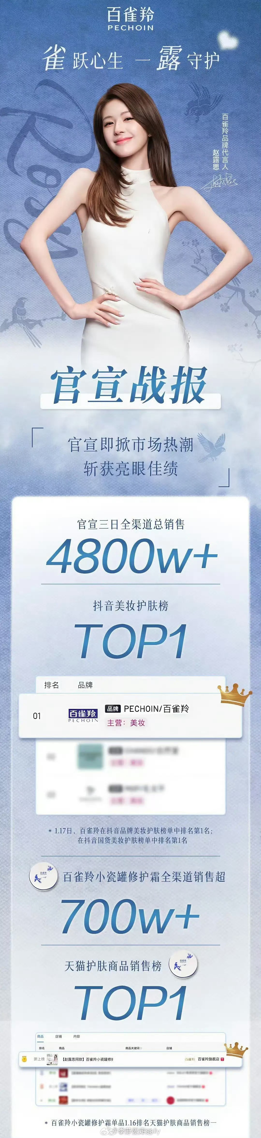 赵露思百雀羚官方战报来了4800w+官宣三天,销量涨幅之大让官方发战报庆贺,就
