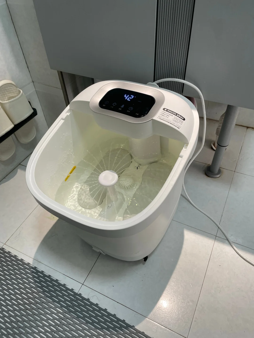 泡脚确实方便了不少,温度可以自己设定泡起来真的舒服,再也不用怕被烫到,想泡多久温度🌡️也不变。而且还有硅胶的按摩盘可以按摩脚底板,💆🏻♀️按摩起来力度刚合适,里面自带两个喷淋刚好淋小腿泡起来更暖和了。