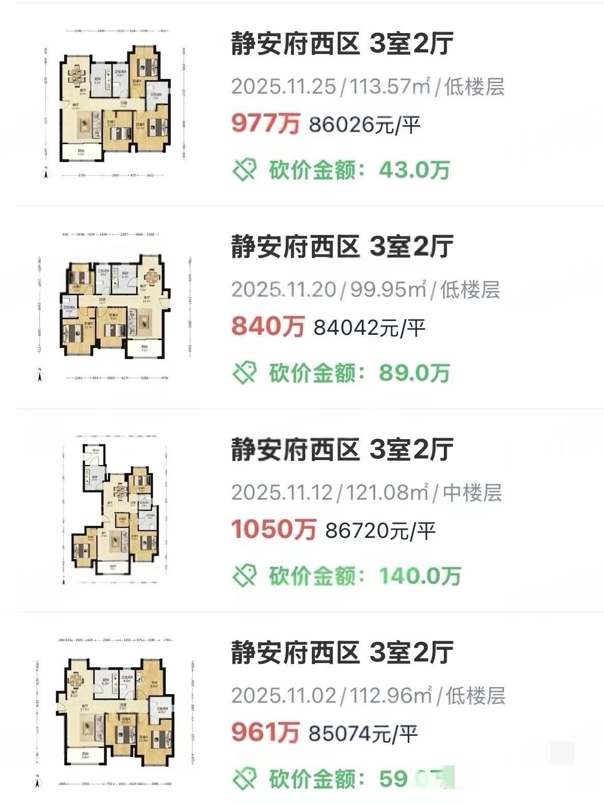 回头再看静安府 终于还是被洪流拉下来了。 坐标上海静安,静安府东区西区,从2023年年初的14万到现在的八九万,算是品质盘里回调最大的了。