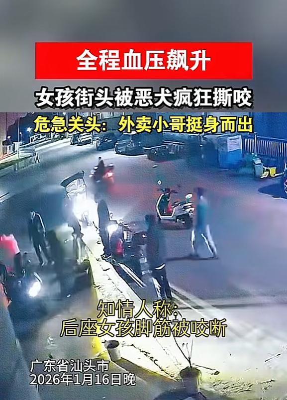 “必须严惩!”1月16日,广东汕头,两名女子骑车时,一条未栓绳的恶犬突然窜出来,追着电动车疯狂扑咬,恶犬死死咬住后座女子不放,并将她拖拽倒地,吓得女子惨叫连连,跟腱直接被咬断,情况十分危急!网友:不栓绳一律处死! 这位狗主人算是彻底栽跟头了!尽管全国范围内因遛狗不牵绳引发的悲剧屡见不鲜,但广东汕头的杨某蓬依然抱有侥幸心理,最终导致自家恶犬将路人跟腱咬断,他本人也因此被公安机关依法拘留。 1月16日晚,一场故事在汕头潮阳区和平镇悄然启幕。夜幕之下,这座小镇见证着即将上演的一切,未知之事正待揭晓。当时两名女子正骑着电动车途经英西港寨前路,毫无防备之际,一条未栓绳的大型恶犬突然窜出,对后座女子展开疯狂追咬,现场情况极其危急。 这起事件的惨烈程度,远比监控视频中呈现的画面要严重得多。那条恶犬狠狠咬住女子的腿部,死命不放,硬是将受害者从车上拖拽倒地。女子痛苦的惨叫划破夜空,令人心惊。最令人发指的,是恶犬在咬住人后并未停歇,反而持续撕扯,导致受害者跟腱当场断裂! 众所周知,跟腱断裂属于重伤,即便是接受了手术治疗,未来行走也极可能落下跛足的残疾,这对受害者的一生都将造成不可逆的打击。 万幸的是,一位名叫林南的外卖小哥恰巧路过。见此情景,他毫不犹豫地上前见义勇为,在周边群众协助下成功驱离恶犬,受害女子这才得以脱险。倘若未如此行事,后果恐将陷入万劫不复之境,不堪端倪。稍有差池,便极有可能再添一桩命案,徒增悲剧。 经事后调查了解,狗主人杨某蓬平日虽然会将狗拴在家中,但事发当天犬只自行跑出,而身为饲养者的他竟然毫无察觉。 饲养这类具攻击性的大型犬只,稍有不慎便可能引发严重灾祸。如此情形,岂容懈怠?必须严加看管,方能防患未然。 如今恶果已成,受害女子跟腱断裂正在救治,同行者亦被咬伤。而杨某蓬本人因“未遵守养犬管理规定导致伤人”,已被公安机关依法拘留。这不仅意味着他需承担高额赔偿,更要面临法律的制裁,实属咎由自取。 值得注意的是,自2026年1月1日起,新修订的《治安管理处罚法》已正式生效实施。在过去,若是遛狗不栓绳致人受伤,只要排除了故意驱使的嫌疑,往往只停留在民事赔偿层面,这让不少缺乏公德的养犬人有恃无恐。 新规明确指出,未对动物采取安全措施(如遛狗不栓绳)致使他人受伤,最高可处1000元罚款。情节严重者,更将面临最高10日的行政拘留!无论是违规饲养烈性犬,还是放任动物恐吓他人,如今都被纳入了治安处罚的射程之内。 正如专业律师所言,新法的核心在于大幅提升养犬人的违法成本,绝不允许无辜的路人继续为狗主人的疏忽大意而买单。 试想一下,受害者本是正常骑车回家,却突遭横祸身受重伤,这是何等的无妄之灾?跟腱断裂带来的终身影响,又岂是金钱所能轻易弥补的? 视频曝光后,网友们的愤怒情绪瞬间被点燃,纷纷留言怒斥:“不栓绳一律处死”、“必须严惩狗主人”,直言这种人根本不配养狗。 更有声音呼吁,应当尽快建立养犬黑名单制度,对于像杨某蓬这样造成严重后果的饲养者,应永久剥夺其养犬资格。 此次汕头警方的处置可谓迅速果断,肇事狗主人已被依法拘留,而挺身而出的外卖小哥林南也受到了政府部门的慰问与表扬奖励,弘扬了正气。 只是令人扼腕的是,即便后续处理再公正,也无法完全挽回受害女子已然失去的健康。各位朋友,在日常生活中你们是否也遭遇过遛狗不栓绳的现象?欢迎在评论区留下您的观点。 信息来源:《女孩被狗狂咬着不放,其中一个女孩跟腱都被咬断,外卖小哥和路人上前帮忙一起将女孩救下。》袁州发布