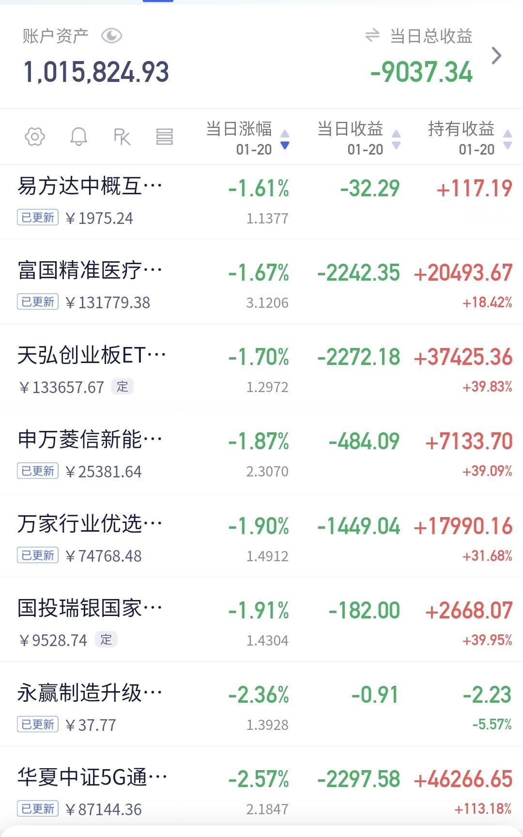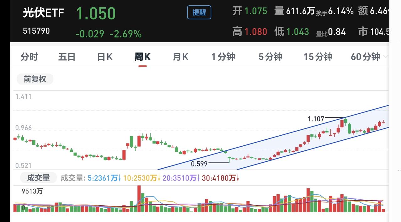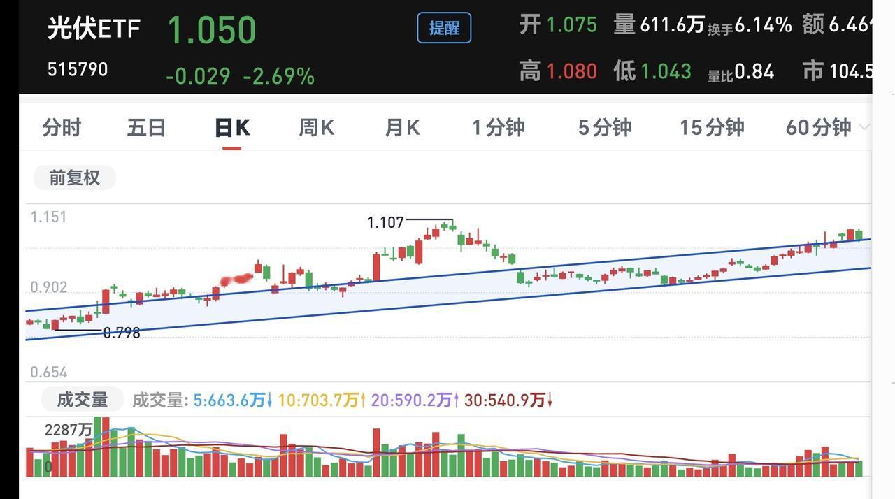 基金:光伏板块应该怎么办 欧洲市场现在下跌中,英国下跌了1.14%,法国下跌了1.37%,德国下跌了1.77%,下跌幅度都超过了1%以上。 香港市场今天也是下跌,恒生指数下跌了0.29%,国企指数下跌了0.43%,恒生科技指数下跌了1.16%。 图3是今天基金的加仓排行榜,图4是今天基金的减仓排行榜,图5是今天基金的持有人数飙升榜,图6的加减仓人数怎么没有了。 持有的基金净值大部分已经更新,上涨幅度最大的三个板块是:白酒板块,证券板块,大消费板块,下跌幅度最大的三个板块是:5G板块,可控核聚变板块,军工板块,净值整体亏损的9037元。 我们来看一下下面的截图9,这是光伏板块日K线图,从图中可以看出,我画了两条倾斜向上的斜线,这是光伏板块日线级别短期上涨通道,前几天上涨突破了这个上涨通道的上轨,今天的下跌又回到了这个上涨通道的上轨线上,但还处于上涨趋势中,持有的人可以继续持有,除非跌破这个上涨通道的下轨,才可以考虑要不要止盈出来观望。 我们来看一下下面的截图10,这是光伏板块周K线图,从图中可以看出,我画了两条倾斜向上的斜线,这是光伏板块周线级别上涨通道,现在的位置处于这个上涨通道中,也就是说,光伏板块周线级别处于上涨趋势中,长线持有的人可以继续持有,除非跌破这个上涨通道的下轨,才可以考虑要不要止盈出来观望。 我每天都会分享我的观点,我的观点只代表我个人的看法,不能作为你操作的依据,据此操作后果自负。