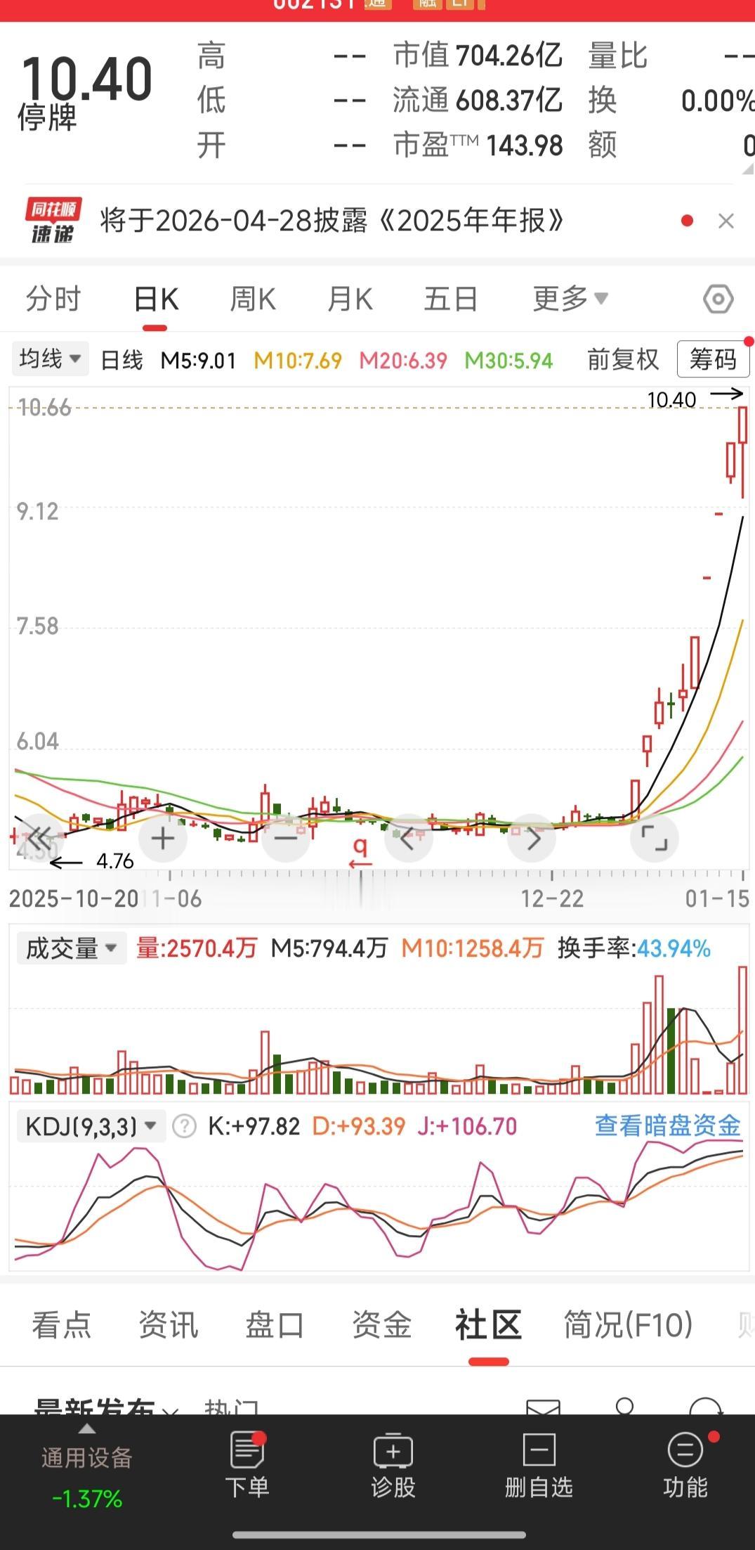 这支股票在同花顺里人气排名又是第1位,不晓得大家是不是像我一样都在期待着明天的开盘,因为它是曾经的龙头,是市场的风向标,你可千万不要倒下呀!商业航天有很多股票都连跌了4个板,今天又是跌的一塌糊涂,本来想抄一下底试试水,但后面想想算了,真的怕抄在半山腰。现在高位股票掉的很严重,因为上面的意思就是要让市场降降温,所以现在连板的股票都很少了,大家基本上赚几个点有点盈利就跑路!炒股就是要识时务者为俊杰,要听上面的话,要炒有价值的基本面好的优质股票,只要他天天往上涨即使涨得慢一点也行,时间久了也能翻一倍两倍甚至好几倍呢。可是有些小散总想着一夜暴富,看哪只涨得好就买哪只,即使泡沫再高也不怕,这样追涨杀跌迟早会亏的头破血流的,大家说是不是?