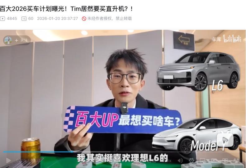 无意翻到在B站的视频,百大up主2026买车计划,竟然看到了两位大咖想看看理想L6....这个我们真没投放啊,要不是看视频我都不知道有这环节...理想L6当然非常值得,不仅刚刚完成了累计36万辆的交付,也在2025年拿下了中大型SUV的销量冠军当然,视频我也看完了,推荐的非常多的还有特斯拉和小米,恰好我自己还有一辆特斯拉,也经常和小米的朋友交流,这些车都非常值得推荐理想汽车理想汽车理想L6