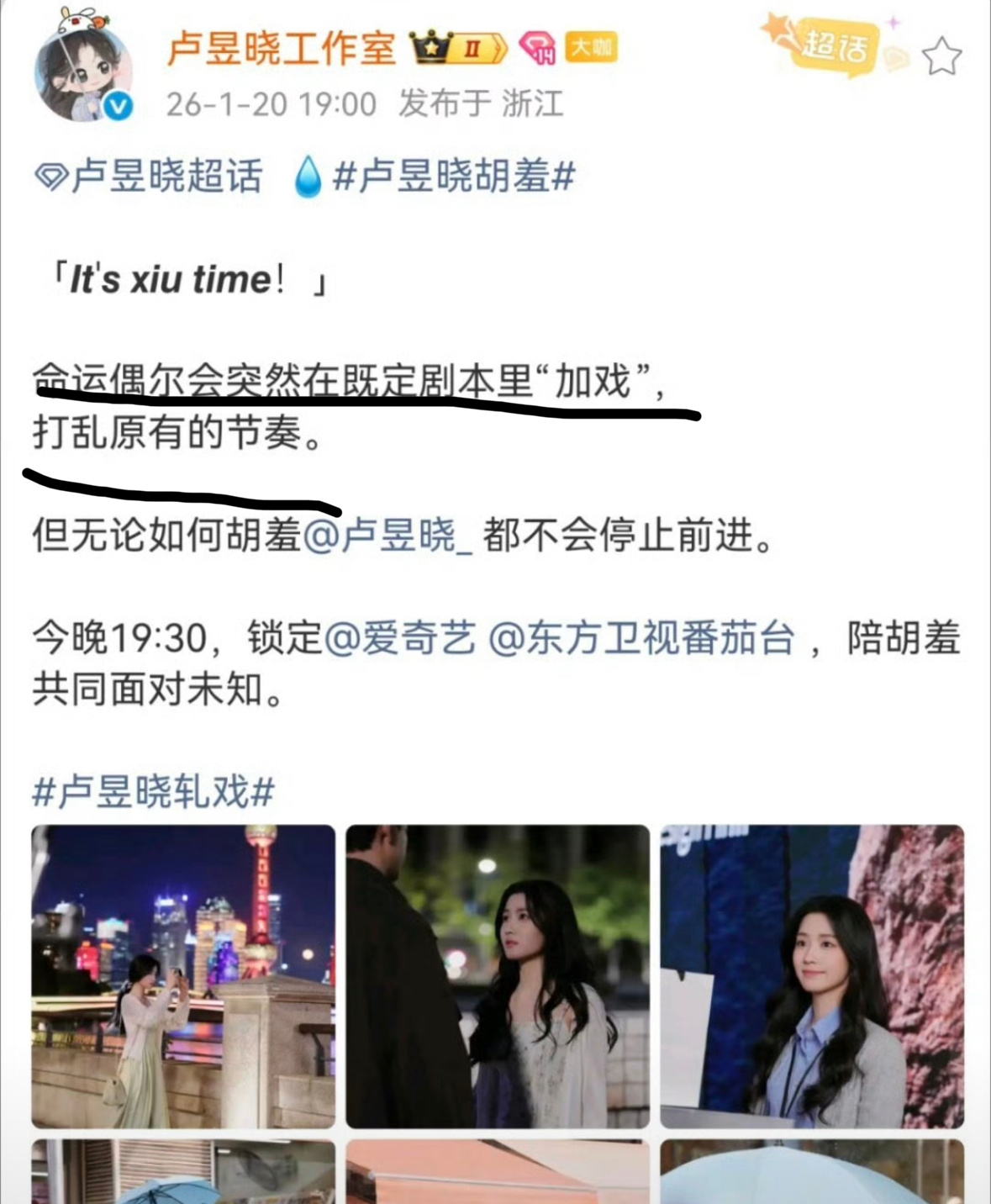 卢昱晓工作室文案说命运偶尔会突然在既定剧本里“加戏”打乱原有节奏这是说谁呢