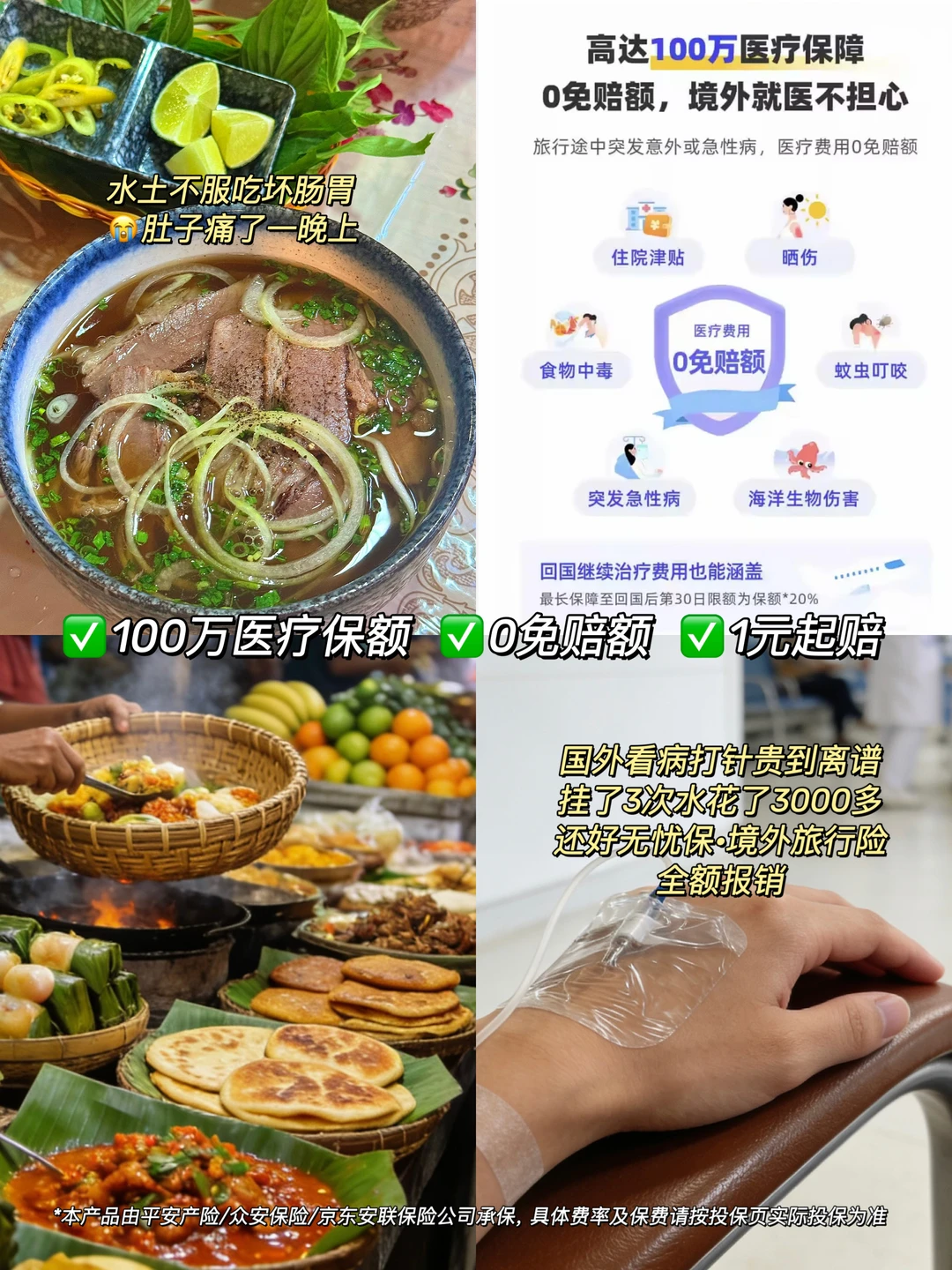 巴厘岛风景很美,像一张张明信片!但海岛气候炎热,卫生环境没有国内好,我水土不服导致吃坏肠胃,肚子痛了一晚上!多亏了出行前购买旅行险!远在国外看病,完全不用担心!有100万医疗保额,关键【0免赔额!1元起赔】,省下大几千高额医疗费