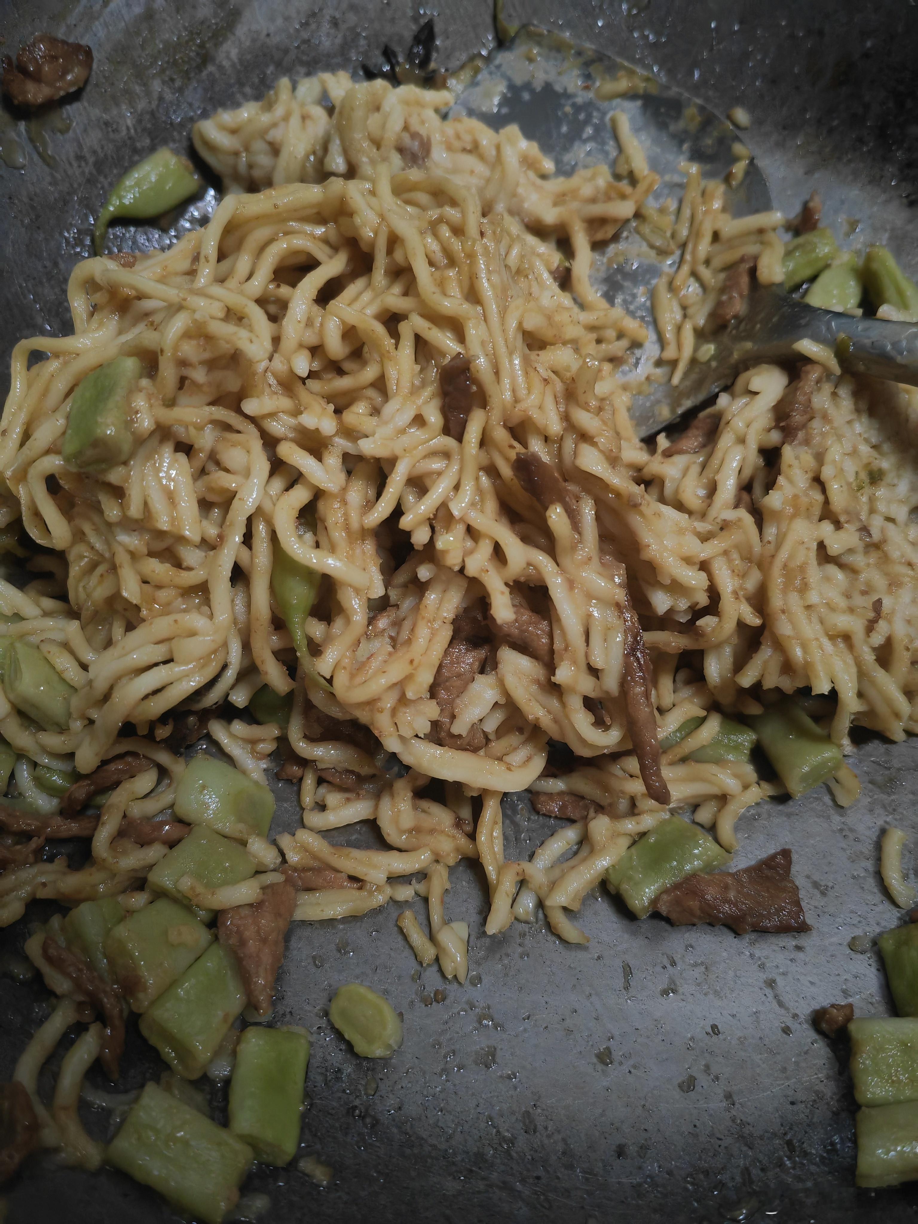 中午做的焖面翻车了,早上买面条去的不巧,只剩手擀面了,结果做成切糕了,不过味道挺