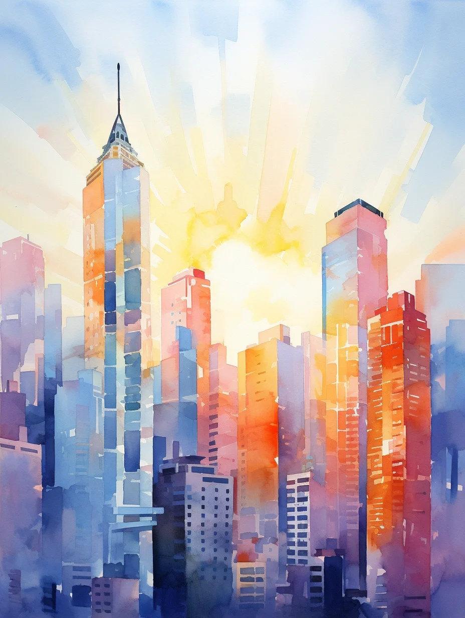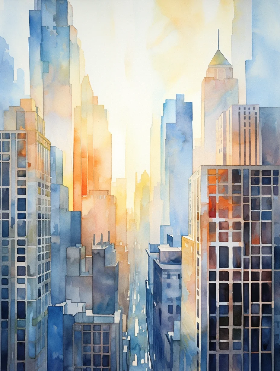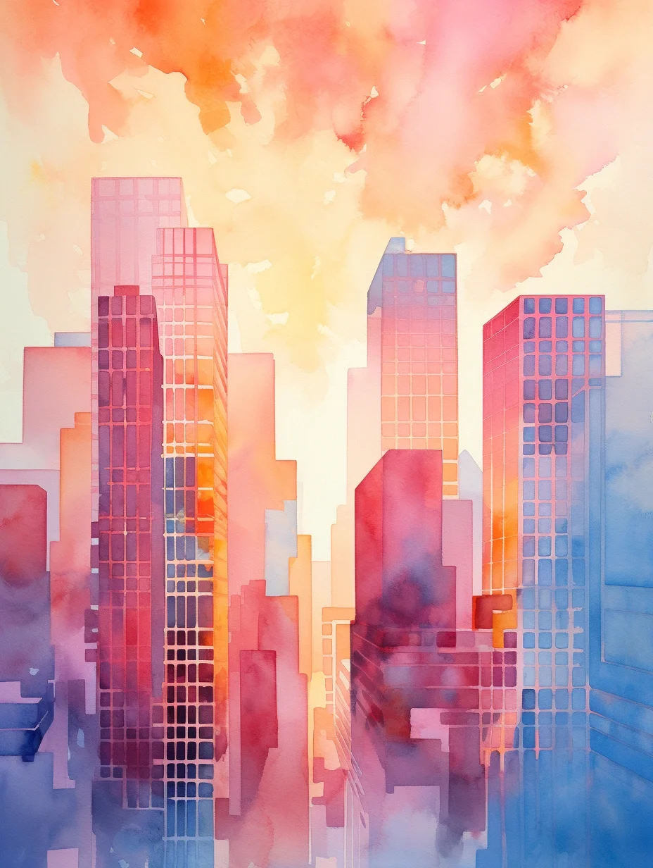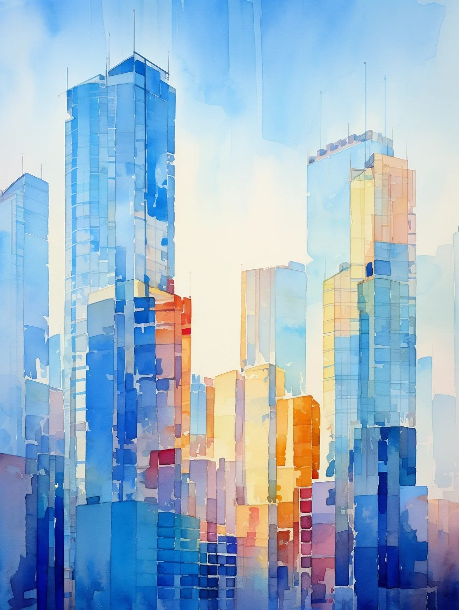 AI水彩:高楼大厦