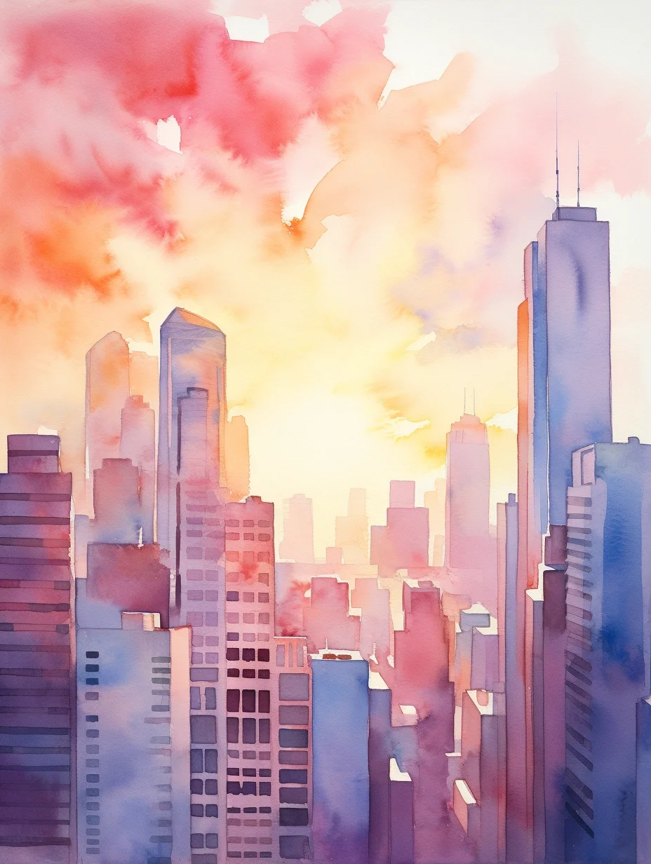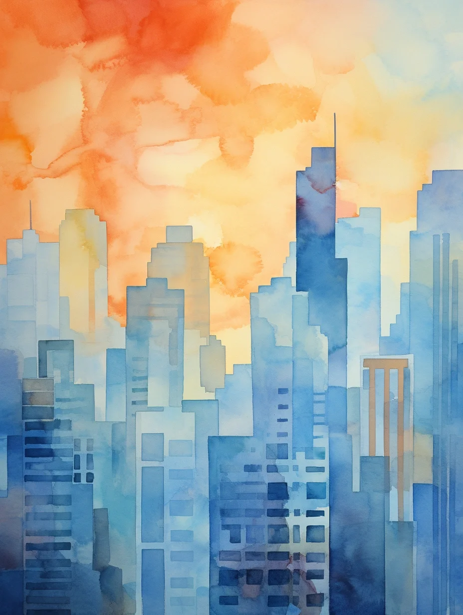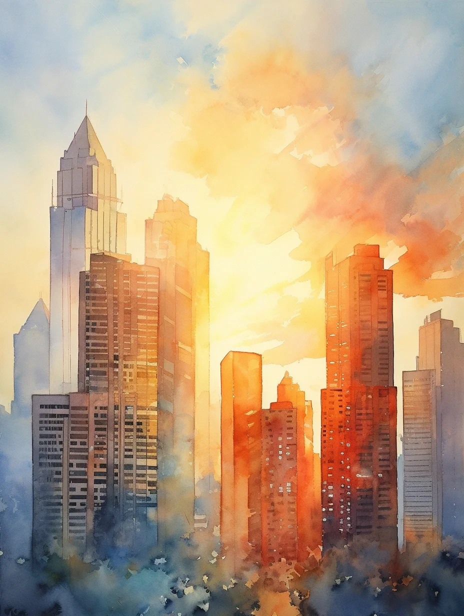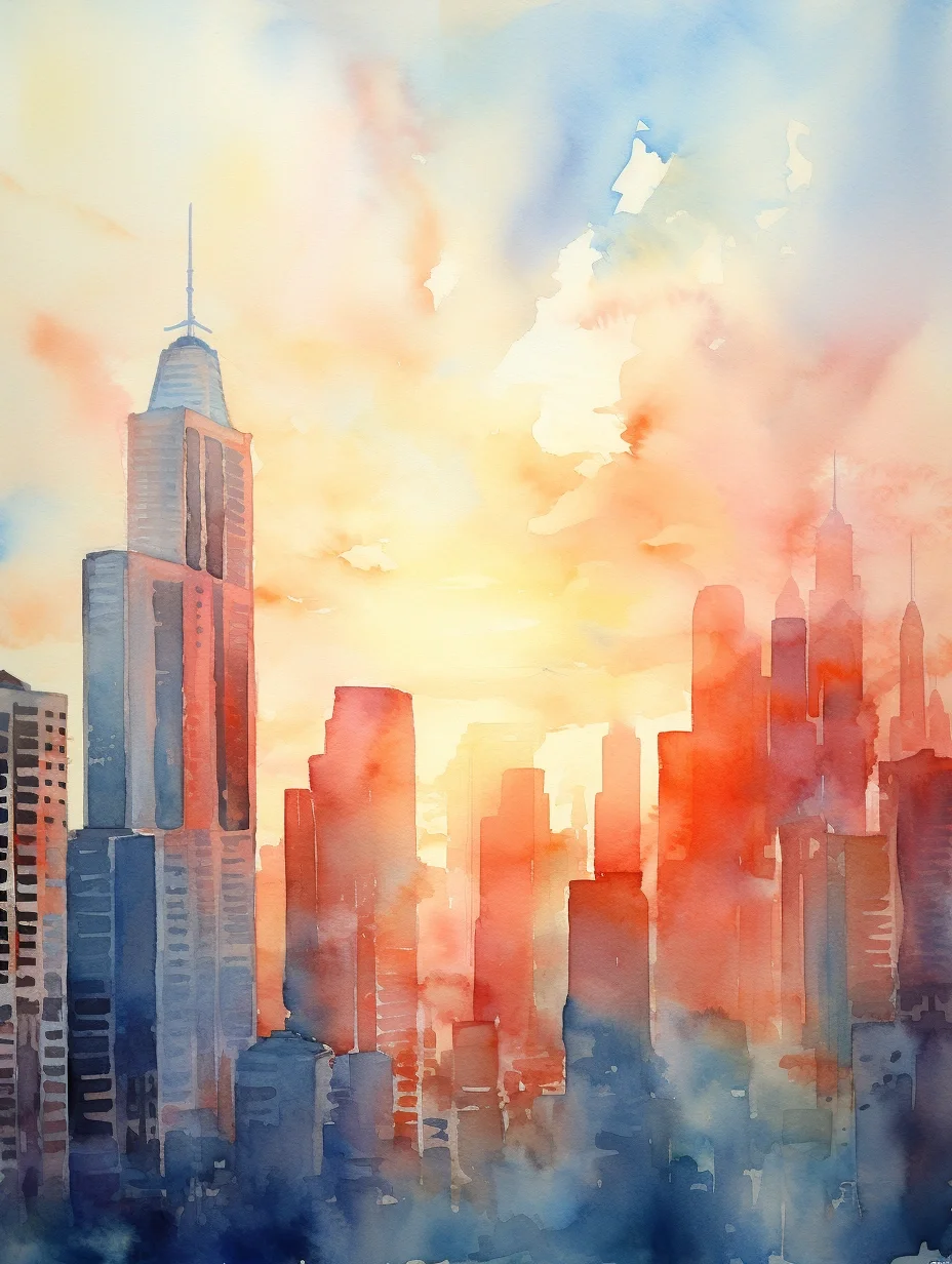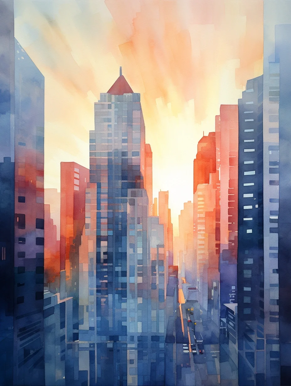 AI水彩:高楼大厦