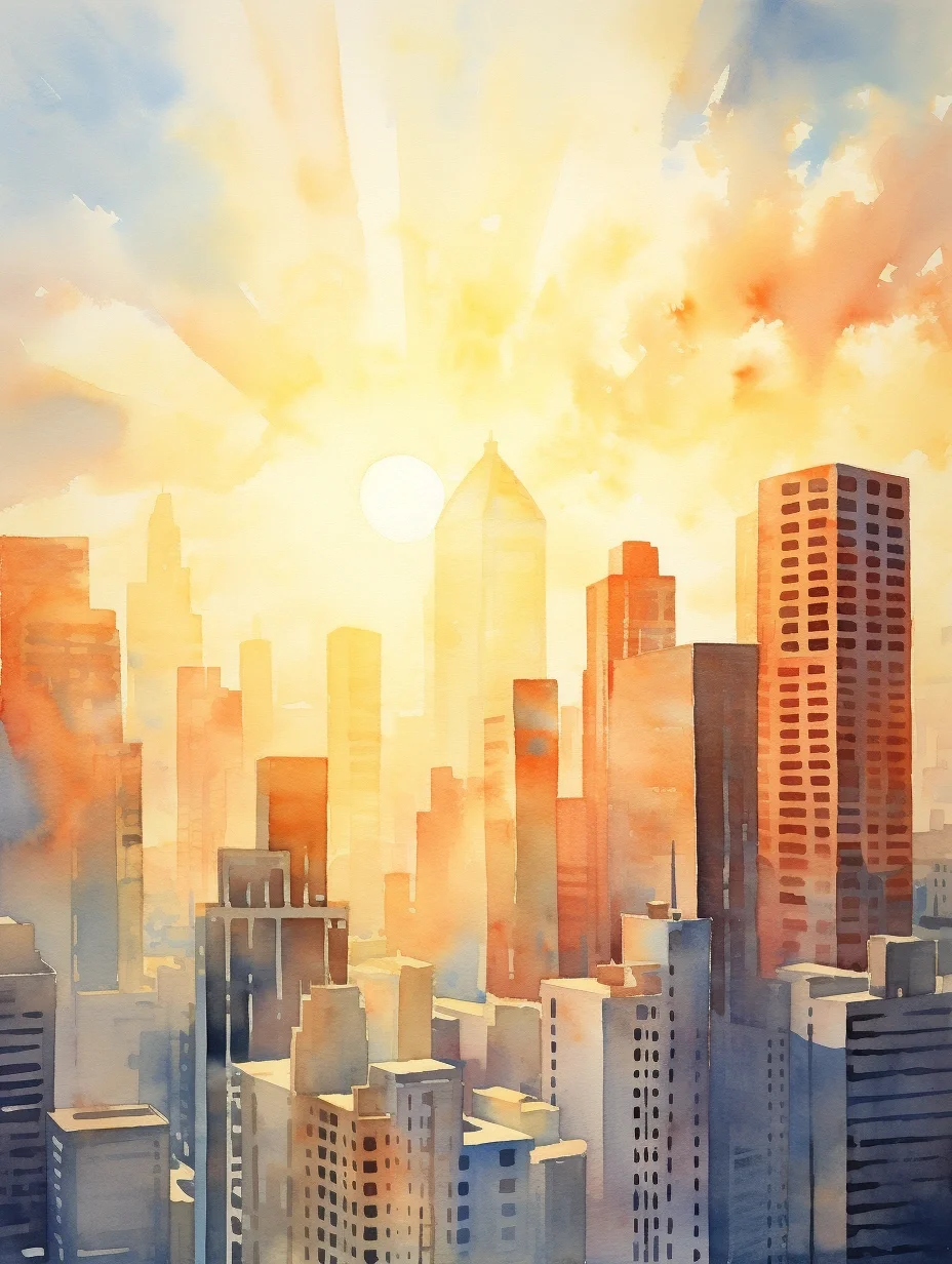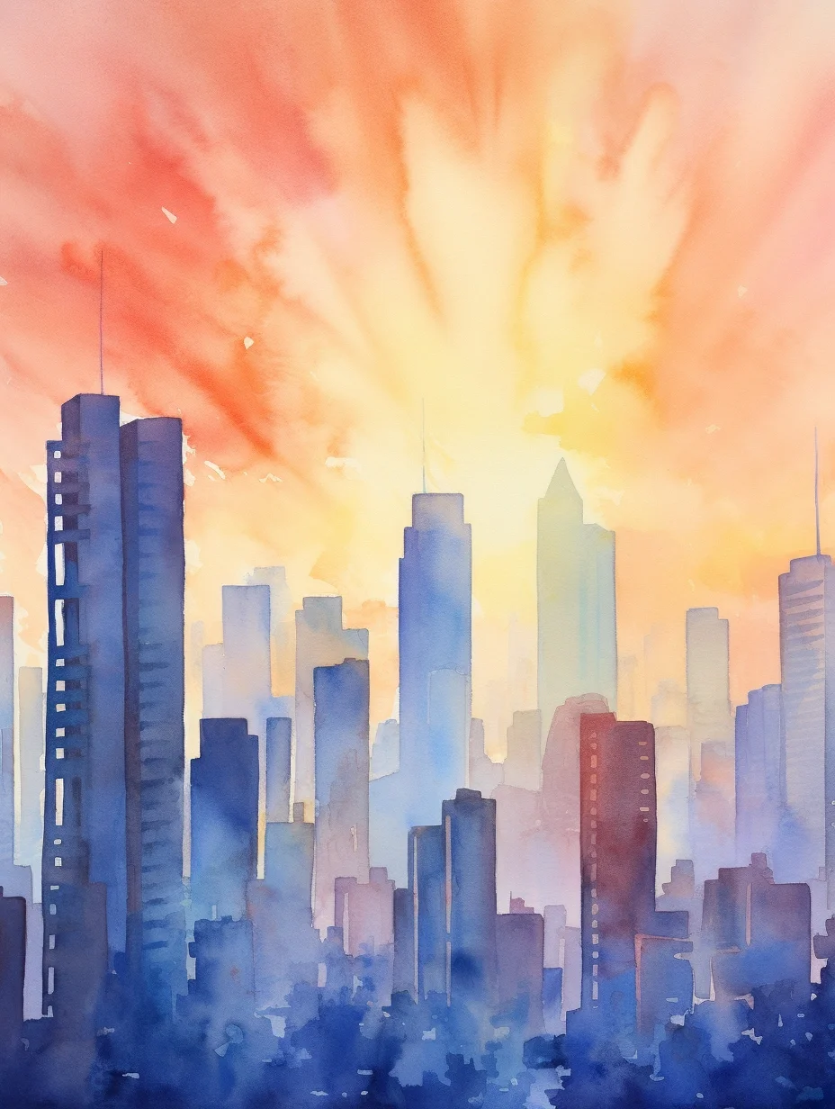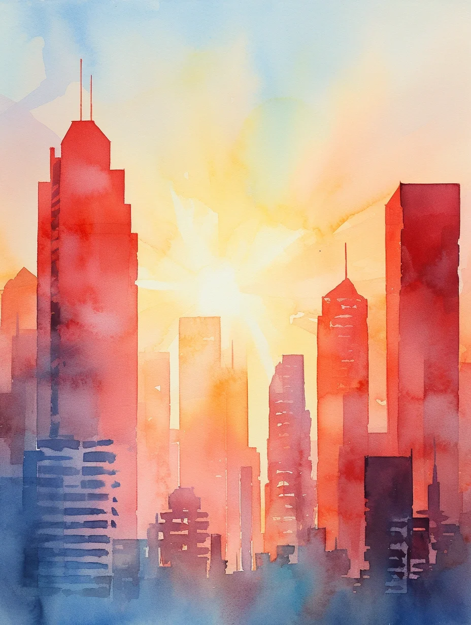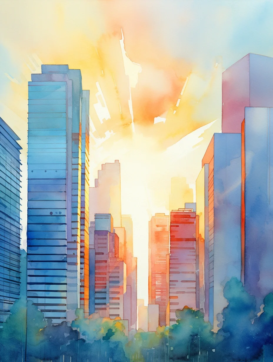 AI水彩:高楼大厦