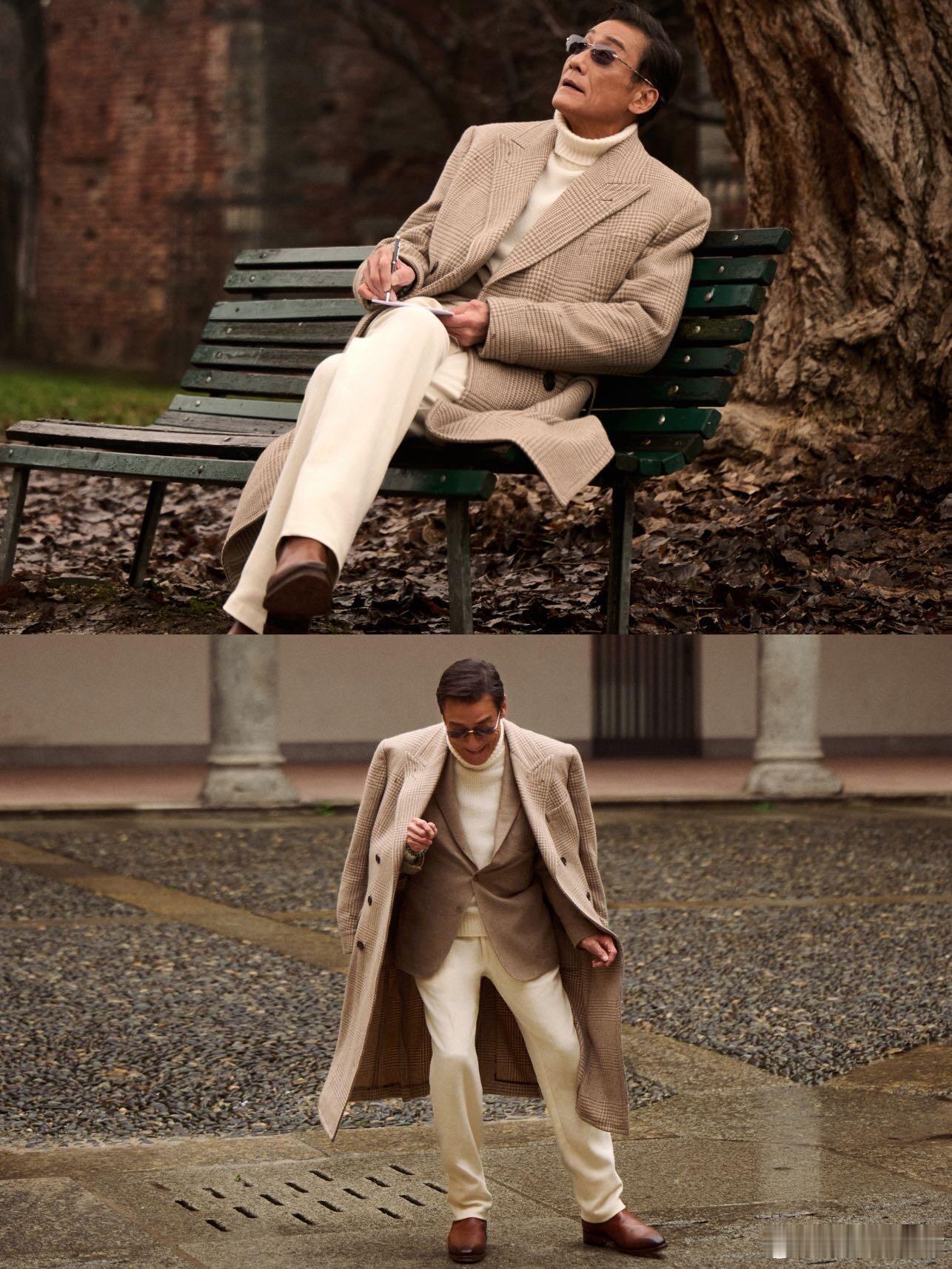 双辉联动!两位影帝把绅士松弛感穿成教科书!梁家辉×张家辉两大影帝现身米兰时装周街头,把Ralph Lauren的美式经典穿出了独属于亚洲男神的岁月质感,这才是“法拉利老了还是法拉利”的最好证明!男装周 梁家辉这身Ralph Lauren Men'25秋季全套look经典优雅!经典廓形贴合身形却不紧绷,搭配同色系高领内搭,雅痞绅士的松弛感扑面而来!张家辉的混搭更是把多元风格玩明白了!Ralph Lauren Men'25秋季系列西装的雅致质感,搭配RRL牛仔裤,碰撞出随性不羁的型格!两位影帝用不同风格的Look完美诠释了RL的绅士气度。米兰男装周