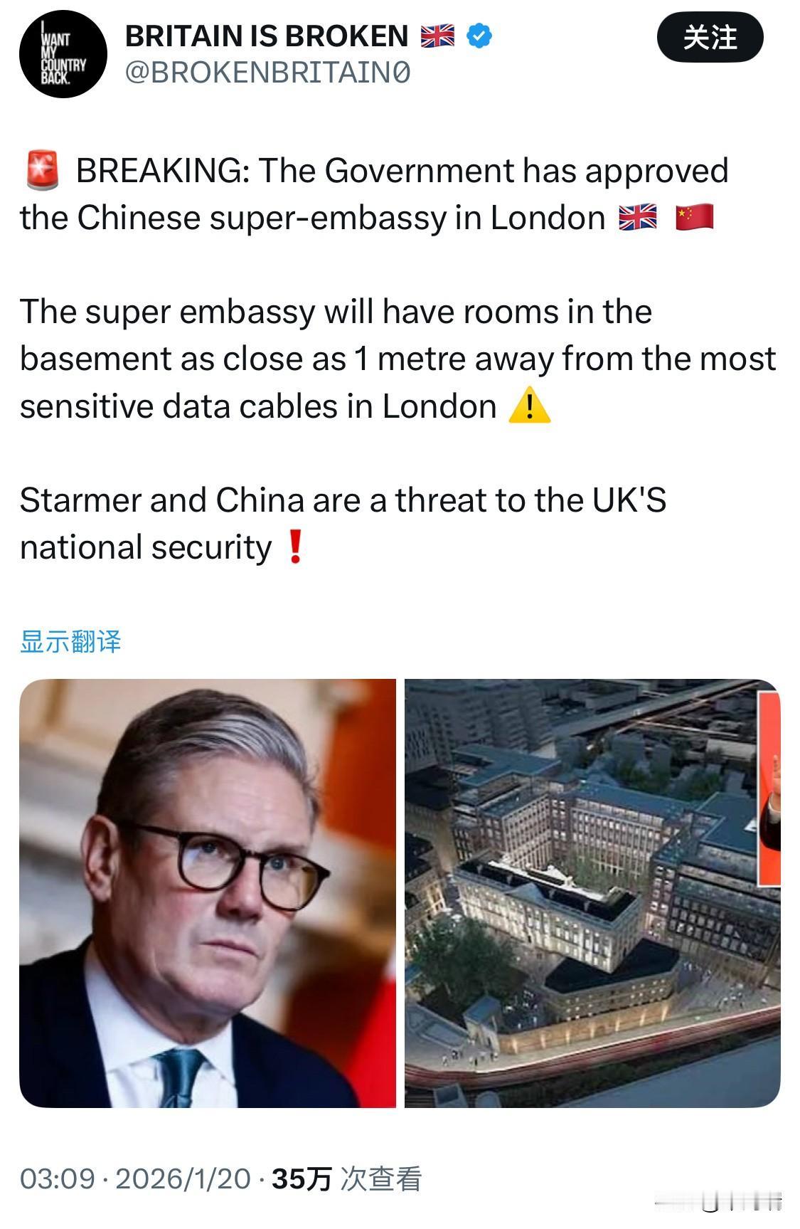 英国政府已于 2026年1月20日 正式批准中国在伦敦兴建新的驻英大使馆,即所谓的“超级大使馆”计划。 大使馆新址位于伦敦东部的皇家造币厂旧址(Royal Mint Court),邻近伦敦塔和伦敦金融城。占地约 5.5 英亩(约 2.2 万平方米),建成后将成为中国在欧洲最大的使馆,也是英国境内面积最大的外交建筑群。 该建筑群将整合中国目前分散在伦敦各处的办公机构,包括位于波特兰广场(Portland Place)的现任大使馆。 英国住房、社区与地方政府事务大臣史蒂夫·里德(Steve Reed)发布了“有条件批准”的决定。该计划自2018年中国购入土地以来,曾因当地议会反对、安全疑虑及地缘政治紧张而陷入僵局。尽管英国情报部门承认无法完全消除安全风险,但政府认为这些风险是“可控的”并已采取缓解措施。 反对者担忧使馆选址靠近承载敏感金融数据的地下光缆,可能成为监听或间谍活动的基地。附近居民及人权团体担忧该馆舍会增加对示威活动的监控和镇压压力,并表示将继续通过法律途径挑战这一审批决定。 此次批准被视为工党政府试图在英国首相凯尔·斯塔默(Keir Starmer)计划于 2026 年 1 月底访华前释放积极信号,旨在加强双边贸易与投资。英国也希望此举能推动英国驻华大使馆在京的相应扩建或翻新工作。